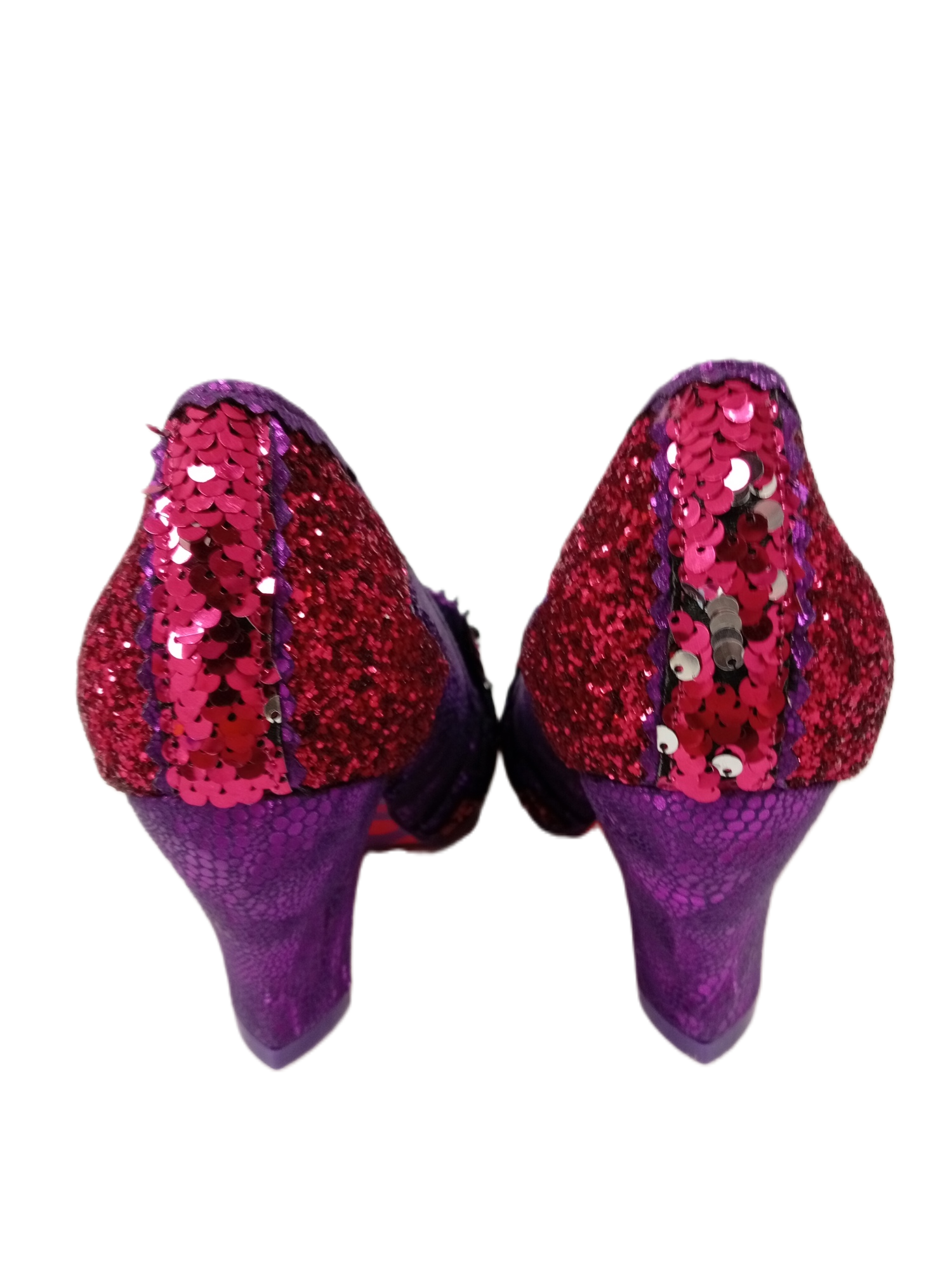 Step into bold, statement-making style with these Irregular Choice purple shiny party heels! Designed to turn heads, these heels feature a striking metallic finish, adding a touch of glamour and uniqueness to any outfit. With their signature quirky design and intricate detailing, they’re perfect for special occasions, parties, or just adding a bit of fun to your everyday look.