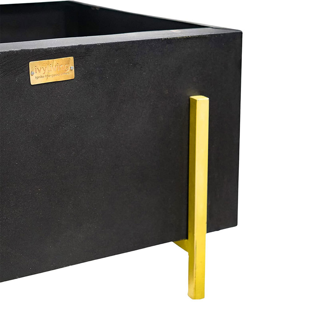 Ivyline Outdoor Orion Garden Fire Pit/Fire Bowl in Matte Black & Antique Gold