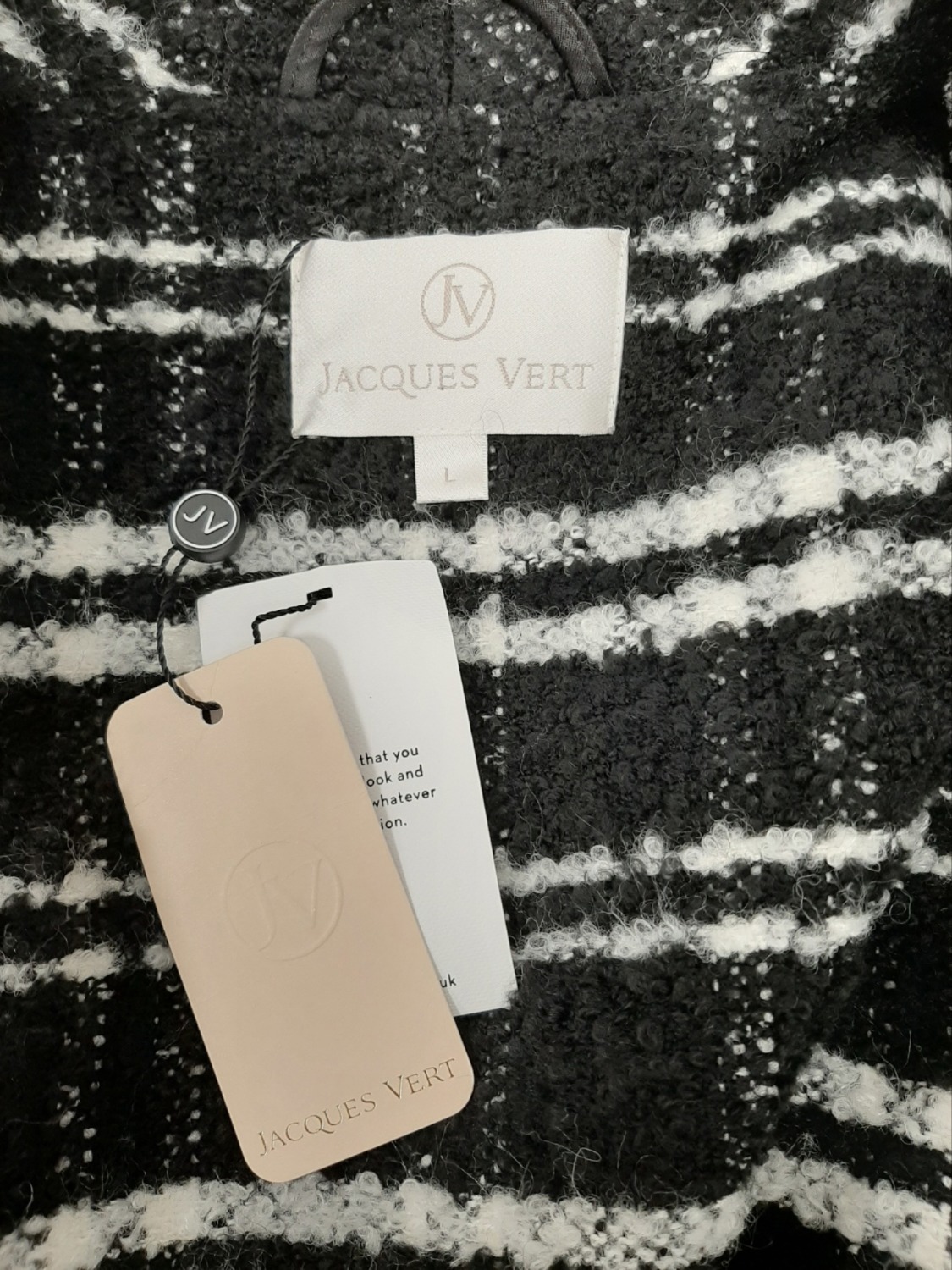 Add a sophisticated layer to your wardrobe with this elegant coatigan jacket from JACQUES VERT. Featuring a classic black design with white stripes, this versatile piece bridges the gap between a coat and a cardigan, perfect for smart-casual occasions.