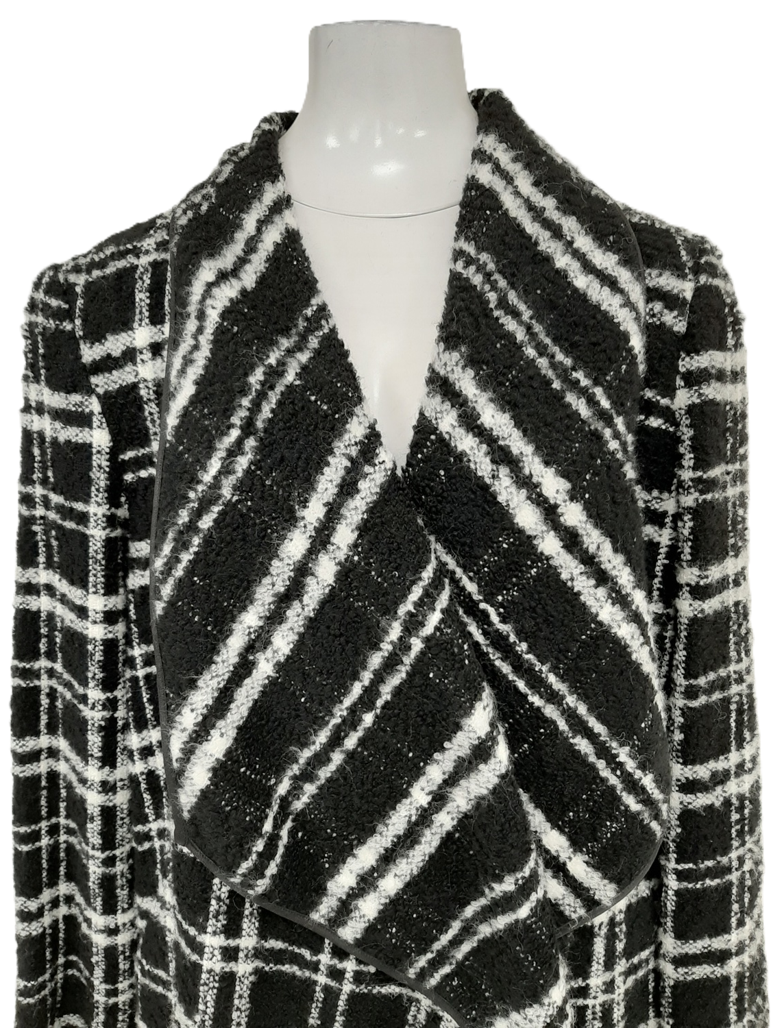 JACQUES VERT Women's Coatigan Jacket - Black with White Stripes - UK Size Large