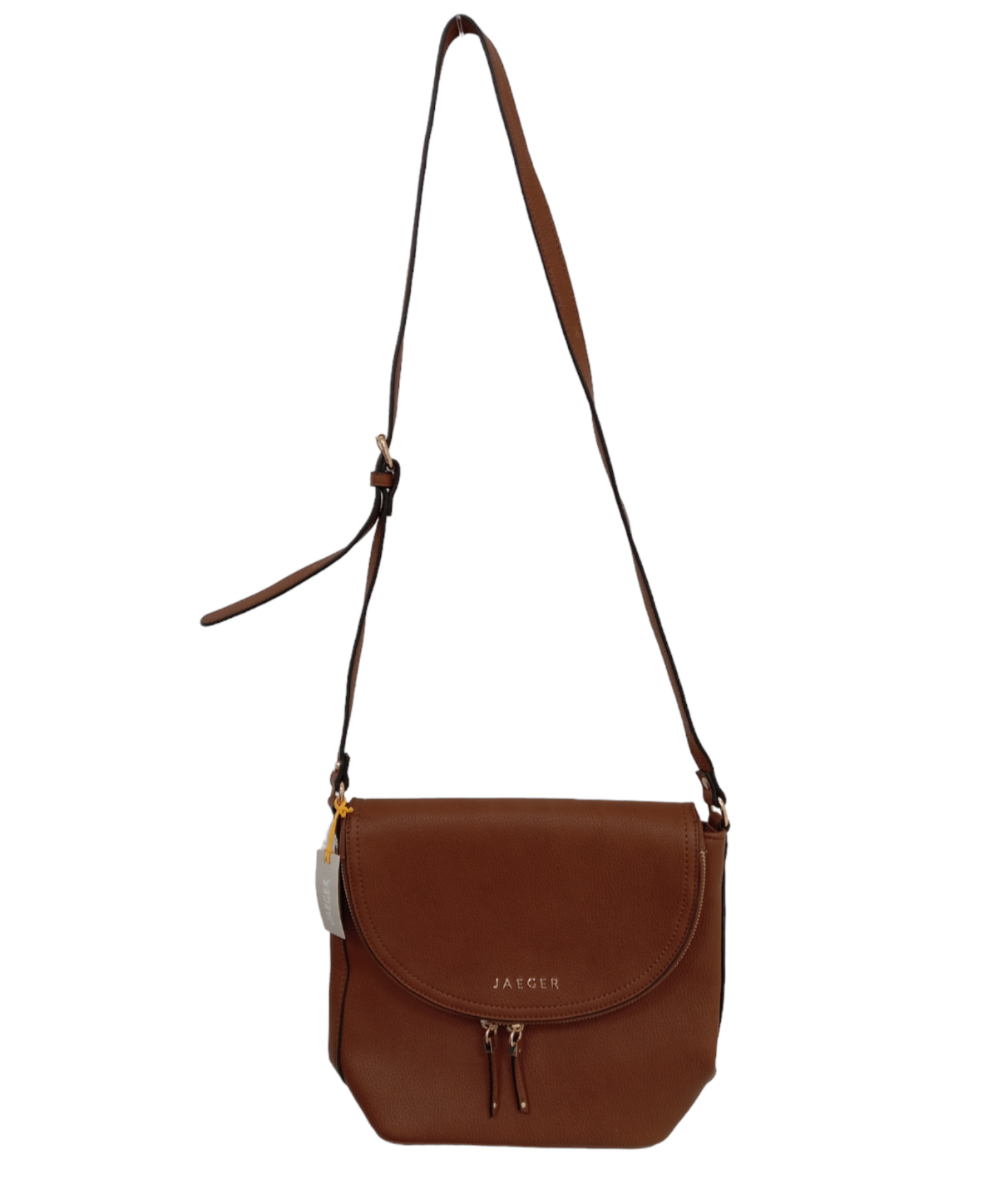 The handbag boasts a rich brown leather exterior that exudes classic style and luxury. Its medium size is perfect for carrying your daily essentials while maintaining a sleek and compact silhouette. The design features intricate stitching, a sturdy top handle, and a secure closure, ensuring your belongings are kept safe. The bag's interior is thoughtfully organized with multiple compartments, making it easy to keep everything in order. The elegant design is completed with subtle branding, reflecting Jaeger's commitment to quality and craftsmanship.