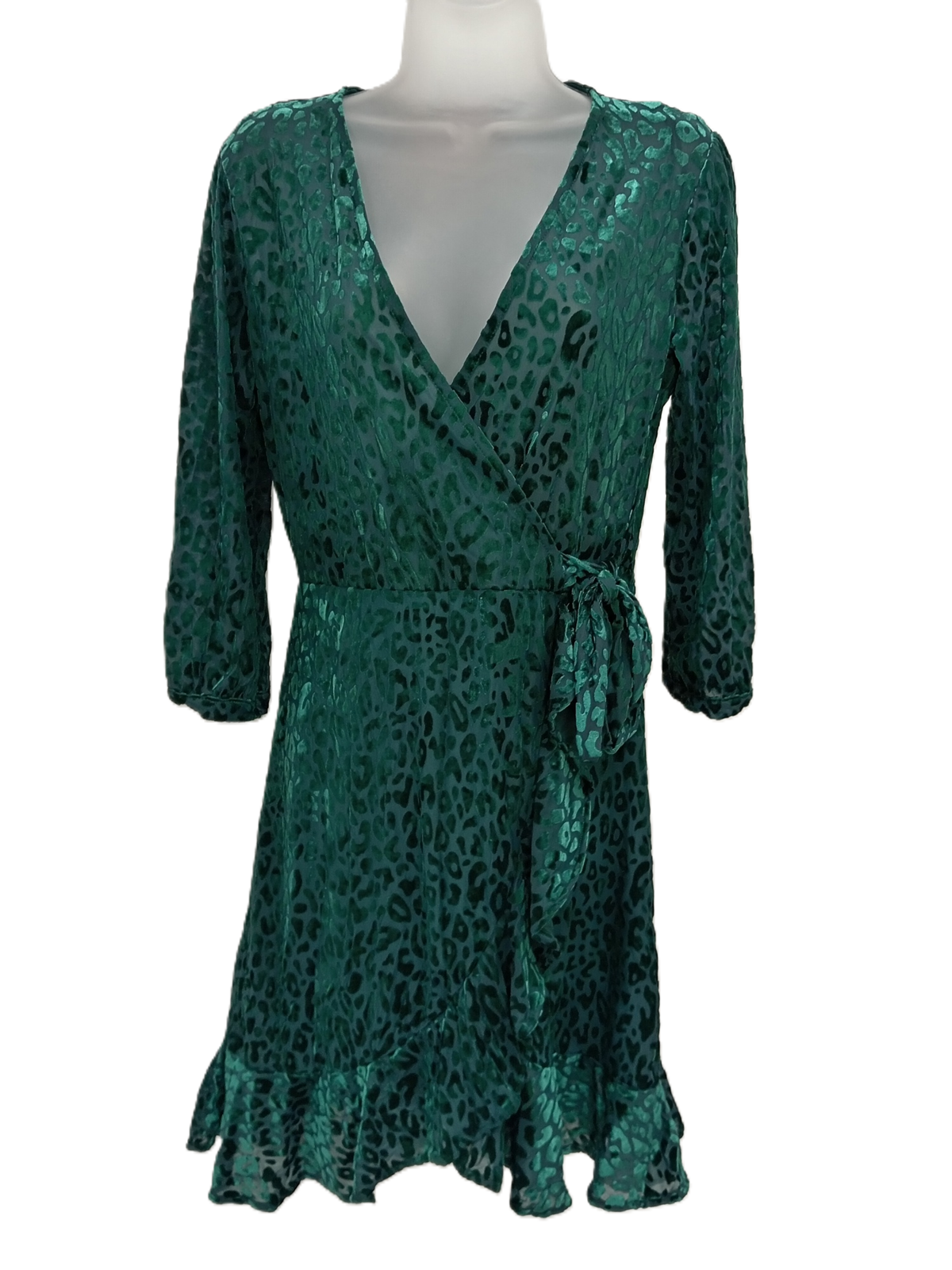 JOE BROWNS Ladies UK Size 10 Dark Velour Green Leopard Print Dress