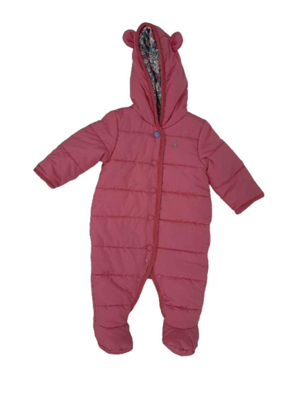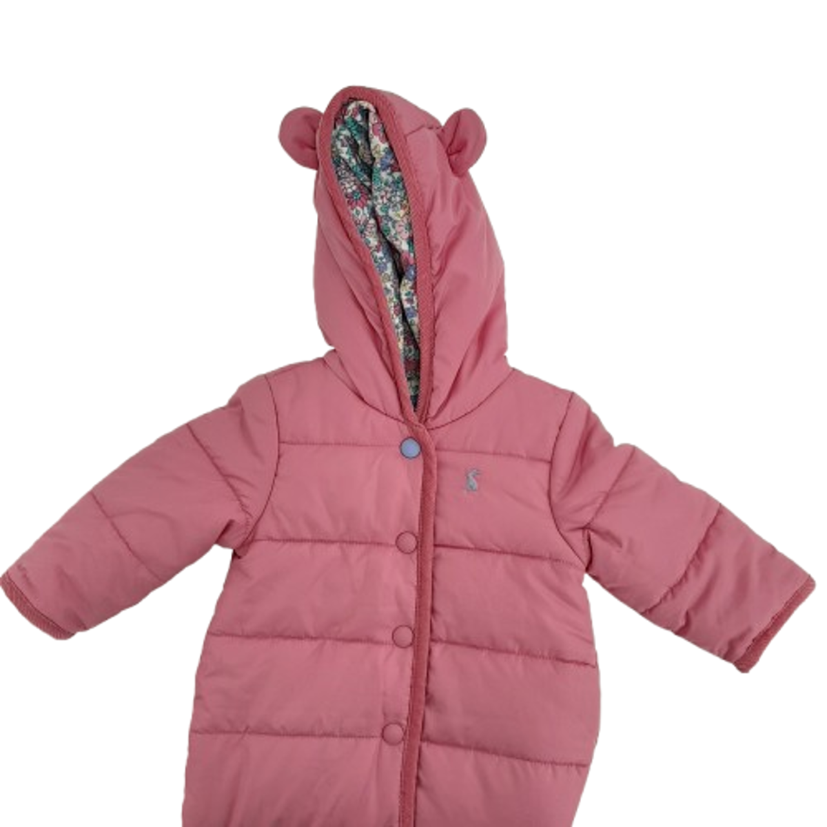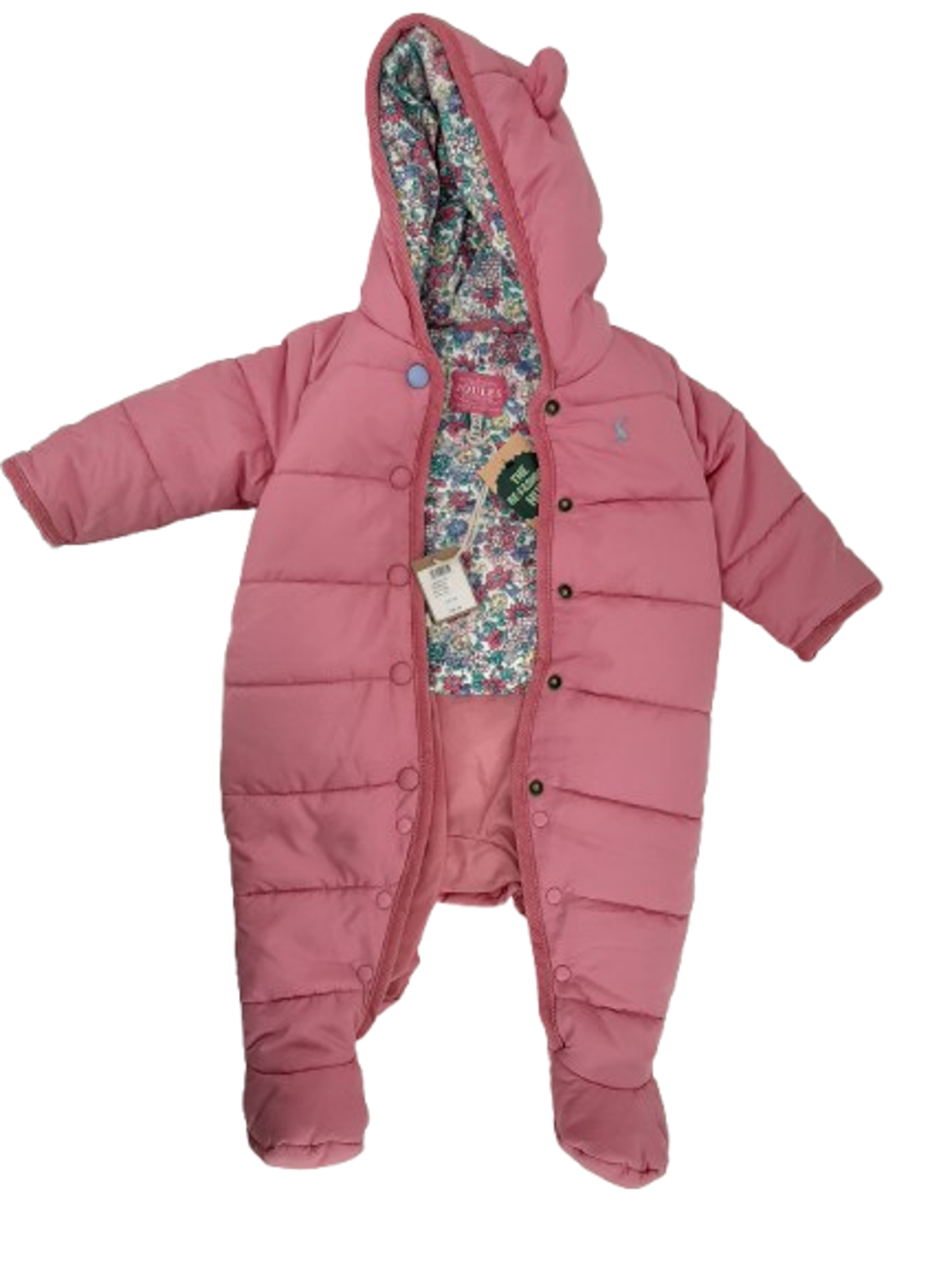 Keep little ones cosy on chilly days with this Joules Pink Padded Snowsuit, designed with a soft hood and warm padding for extra comfort. With its practical all-in-one shape and snug lining, it’s ideal for pram walks, nursery runs, or outdoor adventures in colder weather.