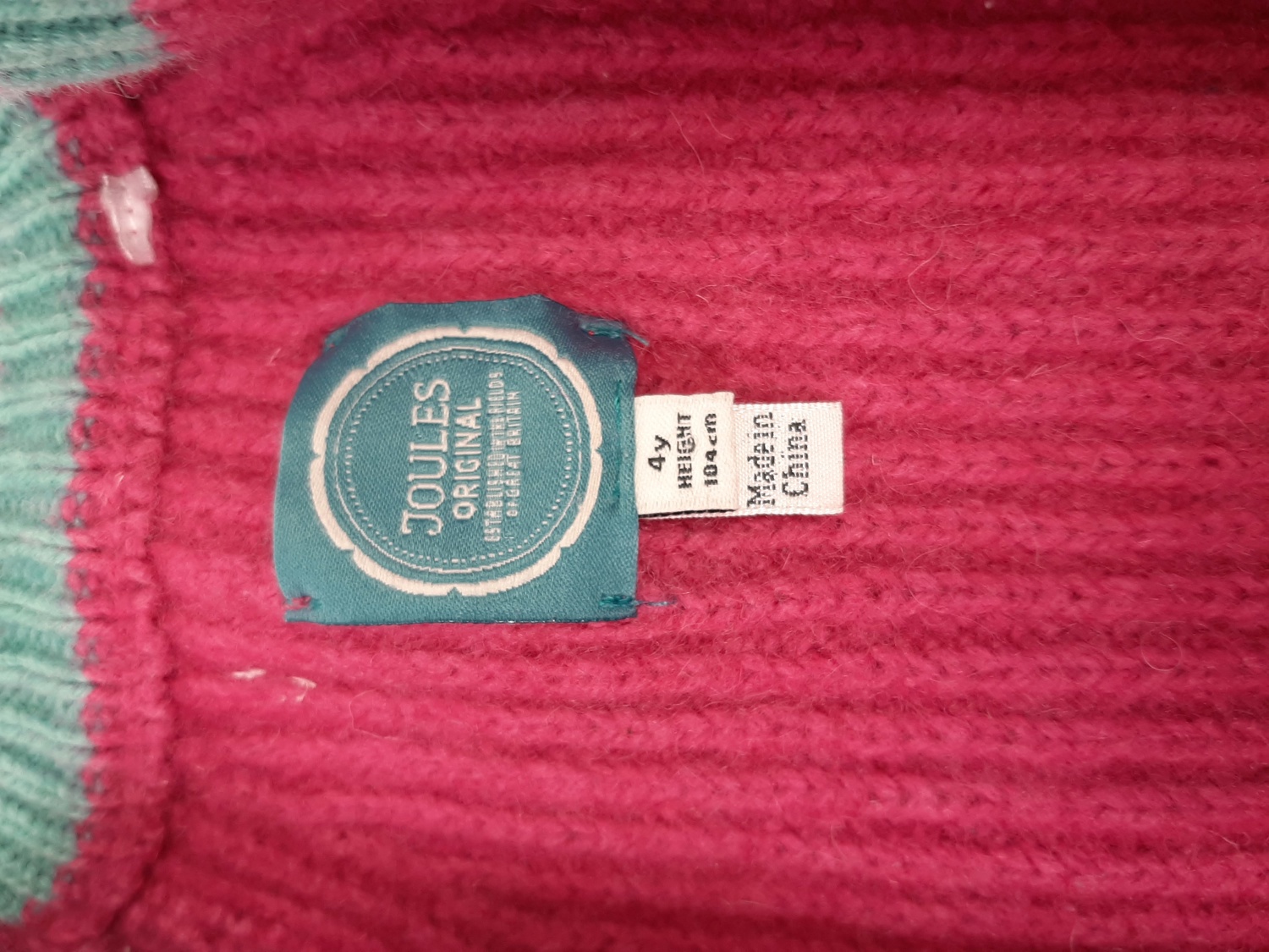 Joules Children's Pink Wool Mix Knitted Cardigan Size 4 Yrs Pre-Loved Re-Fashion