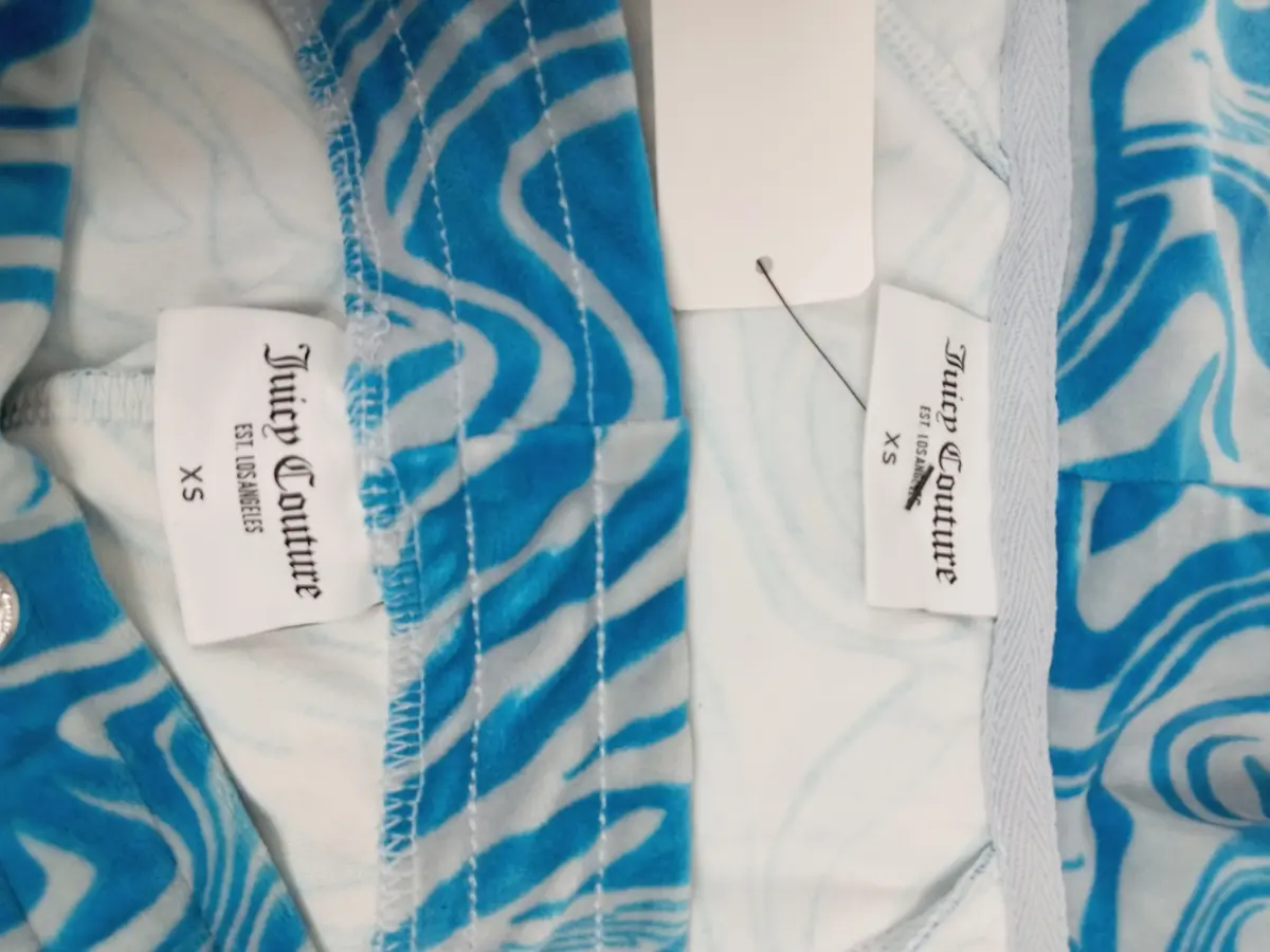 Add a bold and luxurious touch to your loungewear collection with this JUICY COUTURE Ladies XS Blue Tiger Pattern Tracksuit 2-Piece. Perfect for staying stylish and comfortable, this set combines signature design with an eye-catching twist.
