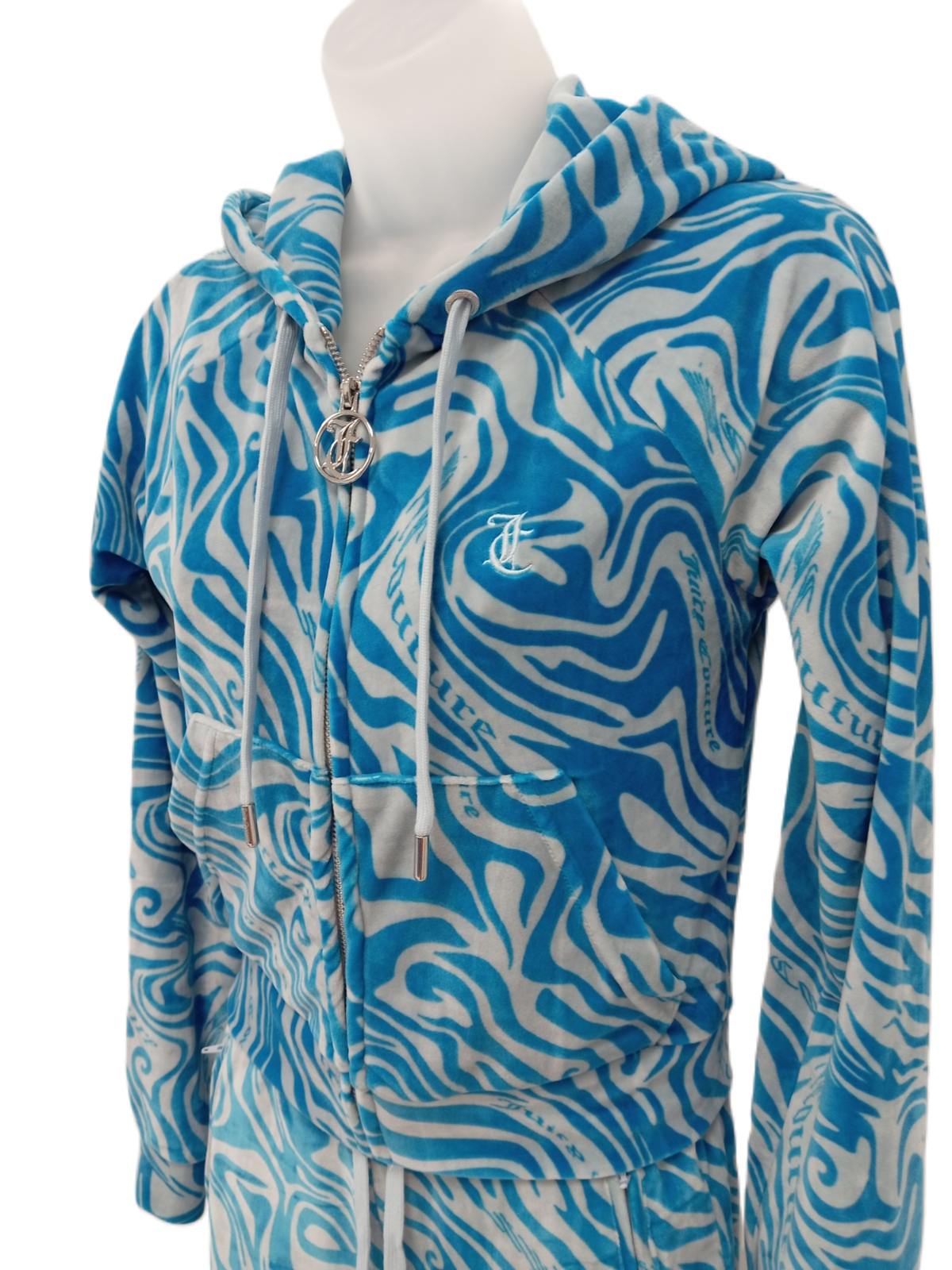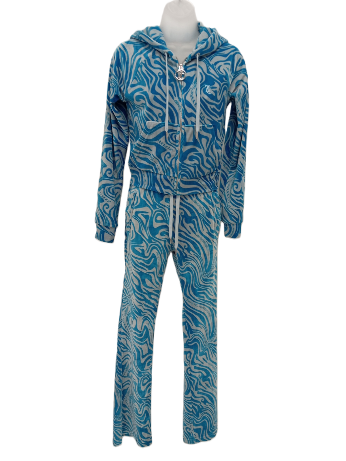 JUICY COUTURE Ladies XS Blue Tiger Pattern Tracksuit 2 Piece Pre-Loved