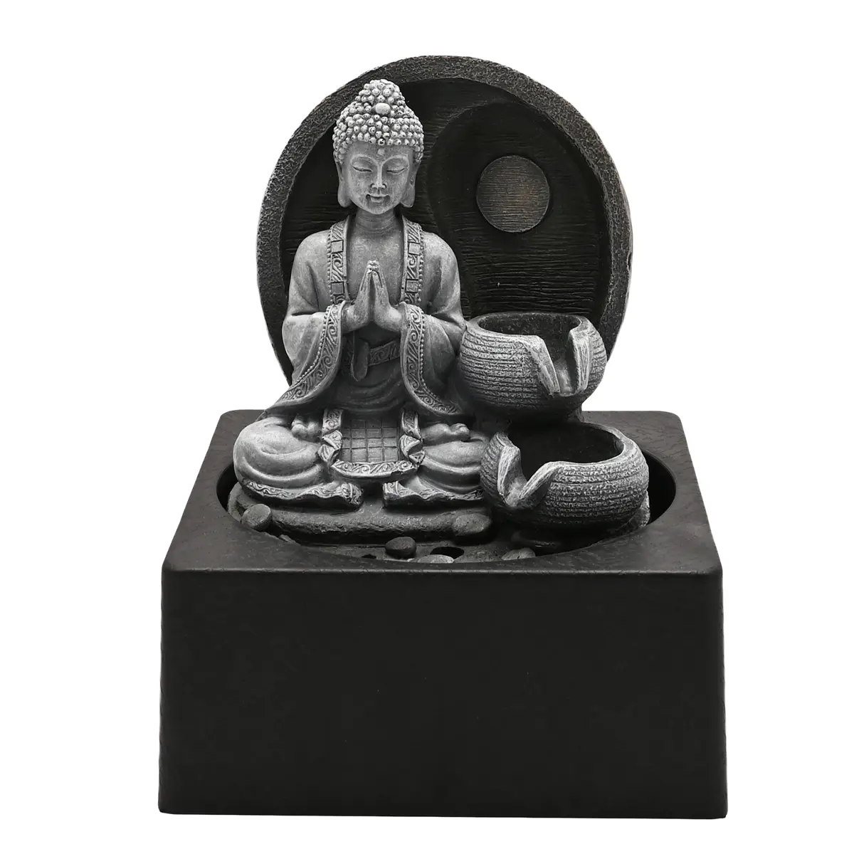 A Buddha indoor water feature with light, from the Religious Collection by the Juliana Collection. This grey polyresin decorative ornament will perfectly complement a mantel, bookcase, or cabinet, and bring a cultural and calming Zen touch to the home. The light gently highlights the Buddha’s features, thus making it an ideal focal point for relaxation. A thoughtful present for anyone seeking tranquillity and mindfulness in their life. Polyfoam and white inner box packaging.