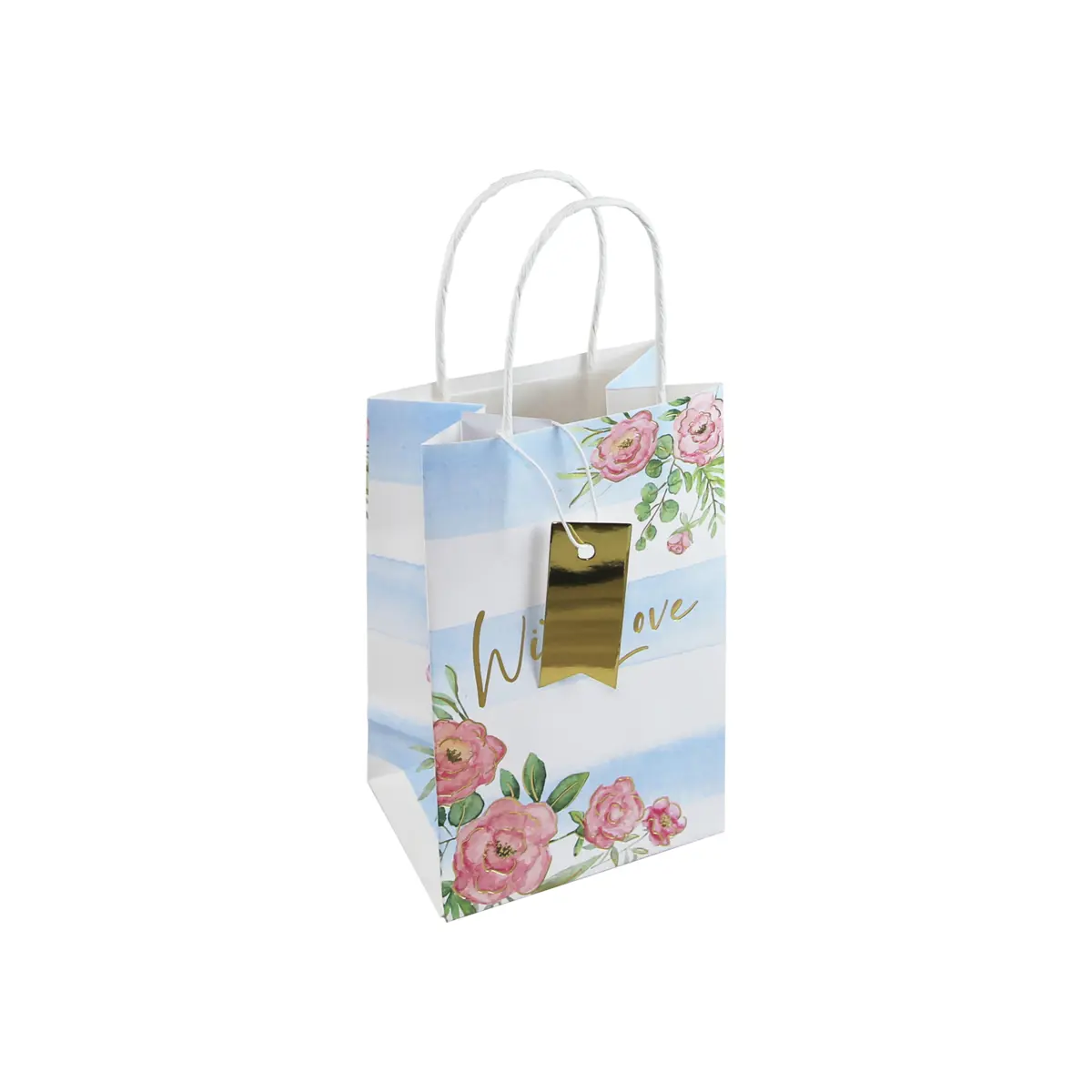 Floral print bag with tag and handles