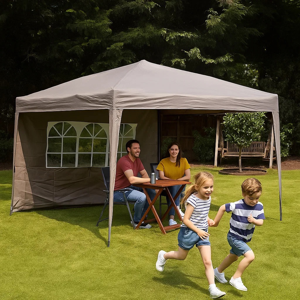 Crafted with 100% aluminium construction, this gazebo is completely rust-free, ensuring long-lasting durability. The easy-up design allows for quick assembly, so you can enjoy the outdoors with minimal effort. Whether you want to embrace the sunshine or seek protection from an unexpected shower, the included side curtain offers flexible coverage to suit all weather conditions.