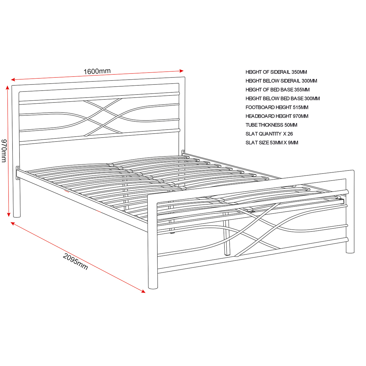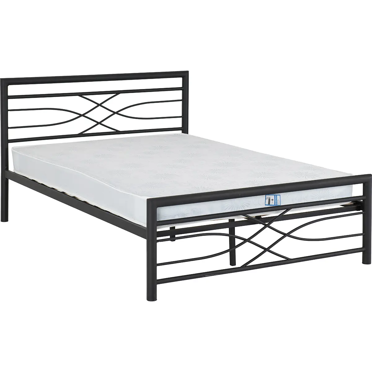 Modern Frame Design: Stylish black metal frame with curved detailing for a contemporary finish. Available Sizes: Single, Double, and King to suit different room sizes. Durable Construction: Strong metal build for long-lasting reliability. Versatile Style: Complements modern, minimalist, and classic bedroom décor. Supportive Structure: Designed for comfort and stability with standard mattress compatibility.