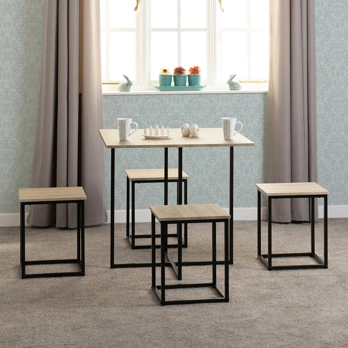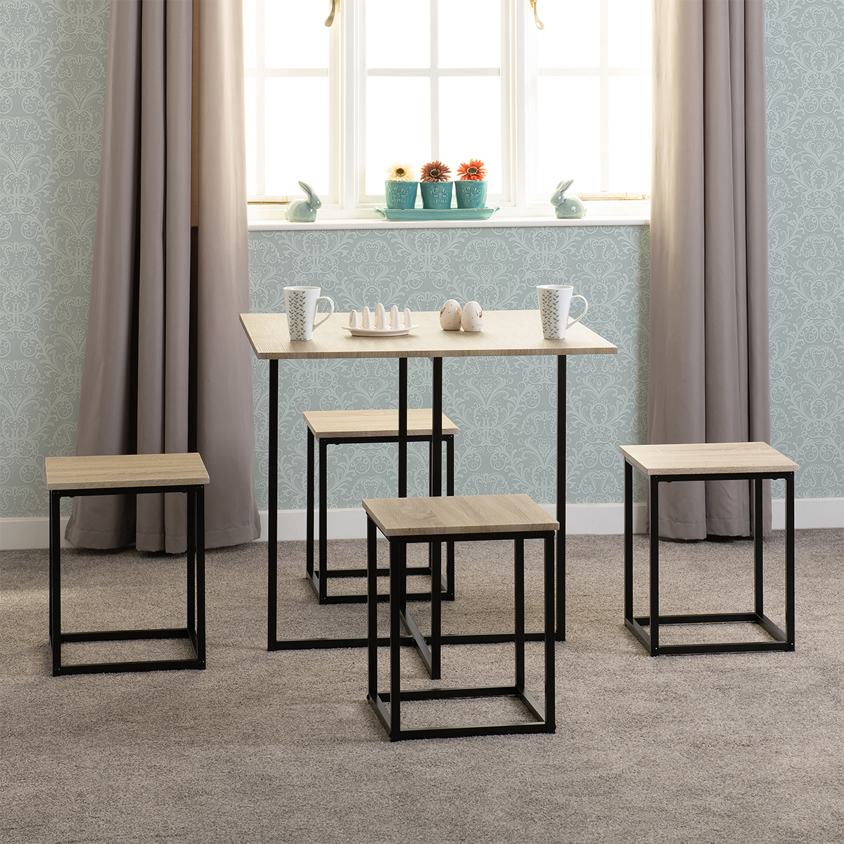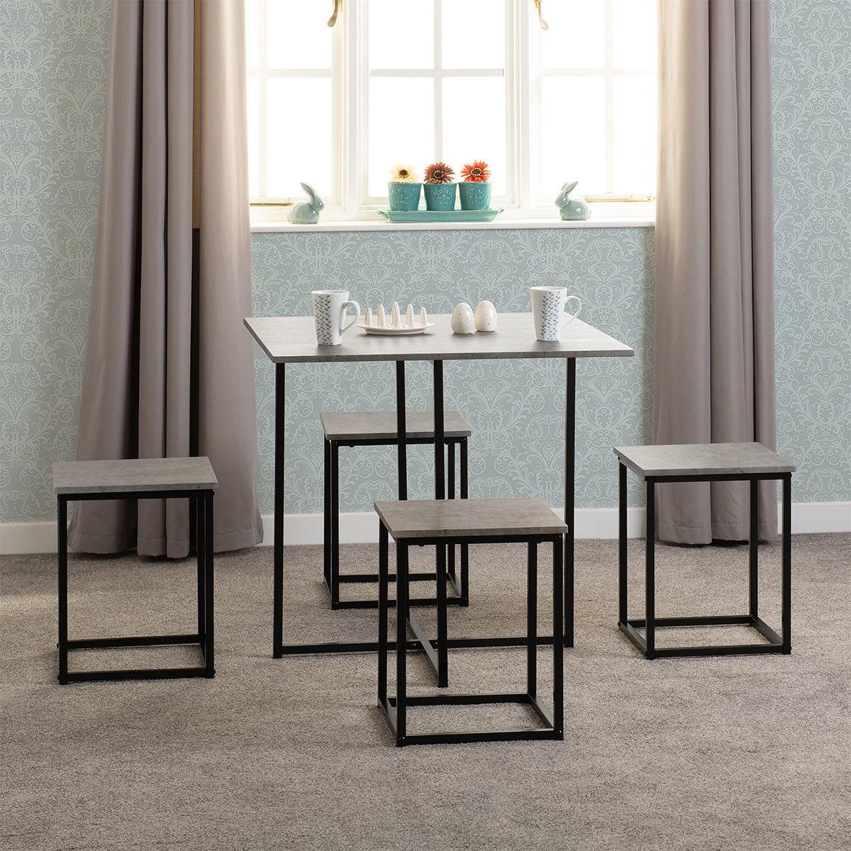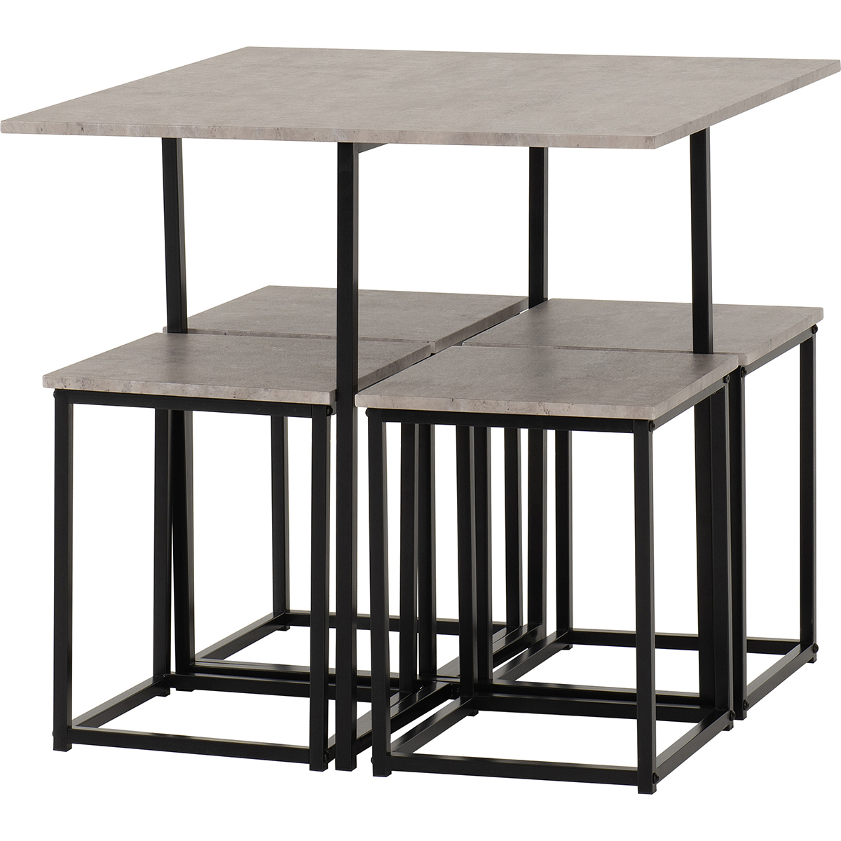 Space-Saving Design: Innovative stowaway feature allows stools to fit neatly under the table for a tidy, streamlined look. Complete 5-Piece Set: Includes one dining table and four matching stools for a cohesive style. Compact Footprint: Ideal for apartments, small kitchens, or limited dining spaces. Timeless Appeal: Minimalist design suits a wide range of décor styles. Modern Aesthetic: Neutral colour palette and clean lines complement contemporary interiors.
