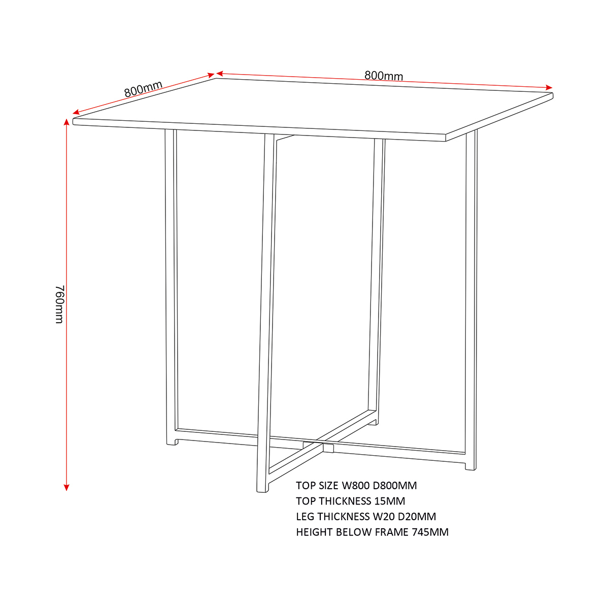 Table Assembled Dimensions: Width: 80 x Depth: 80 x Height: 76 (cm)