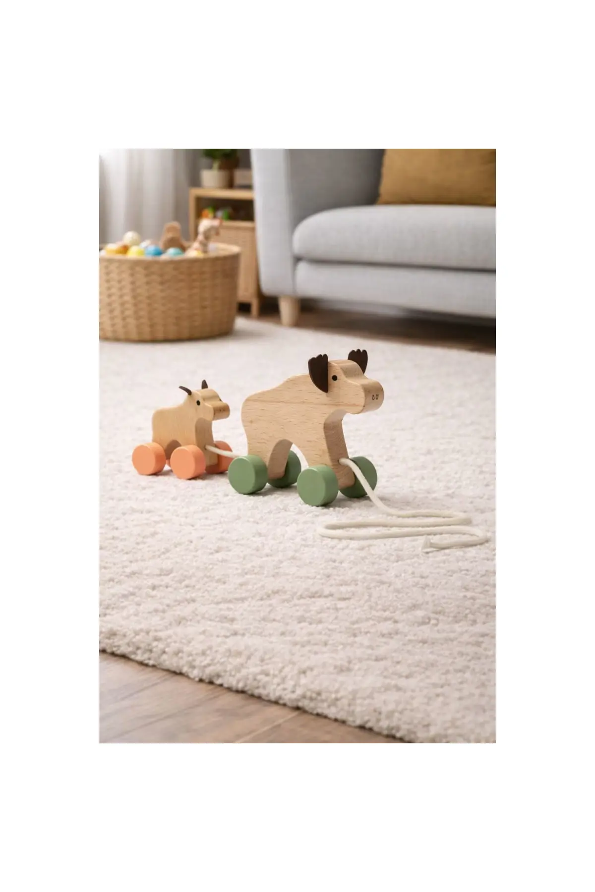 Thoughtfully designed for little hands, Bo and Alf have soft felt horns and beautifully crafted bodies made from FSC-certified wood. With a sturdy pull string, children can take them along on walks around the house, encouraging movement, coordination, and imaginative exploration.