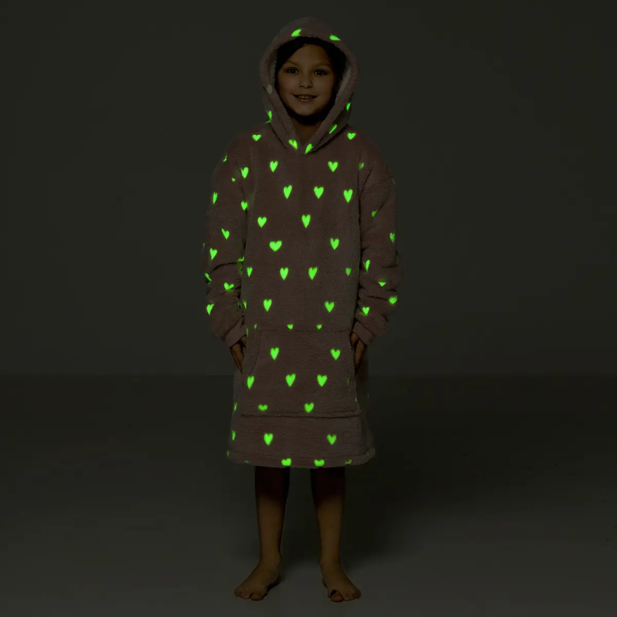 Kids Glow In The Dark Hearts Hooded Blanket 9-12 Yrs