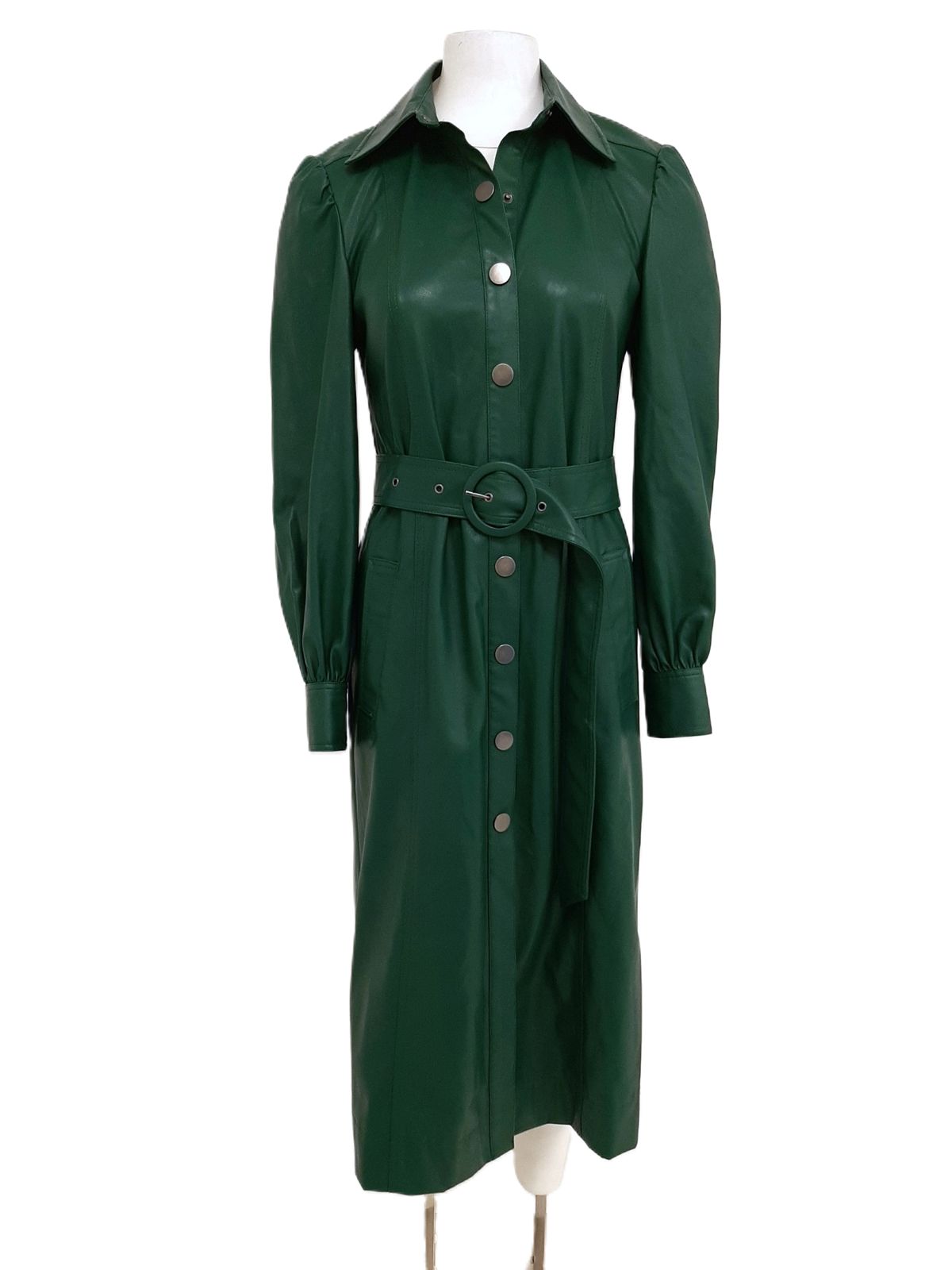 KITRI Women's Green Faux Leather Long Coat – Size UK 8 – Pre-Loved Condition