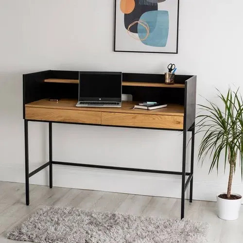 With its oak-effect finish, wrap-around design, and black metal legs, the Otto desk brings a modern touch to any workspace. Stylish drawers provide convenient storage for your work essentials, helping you stay organised while maintaining a clutter-free environment.