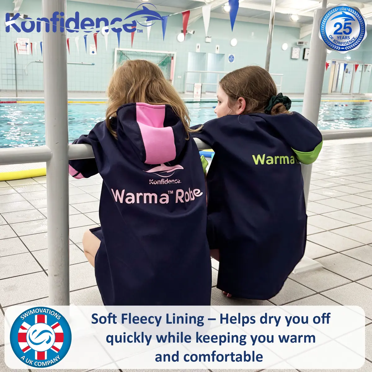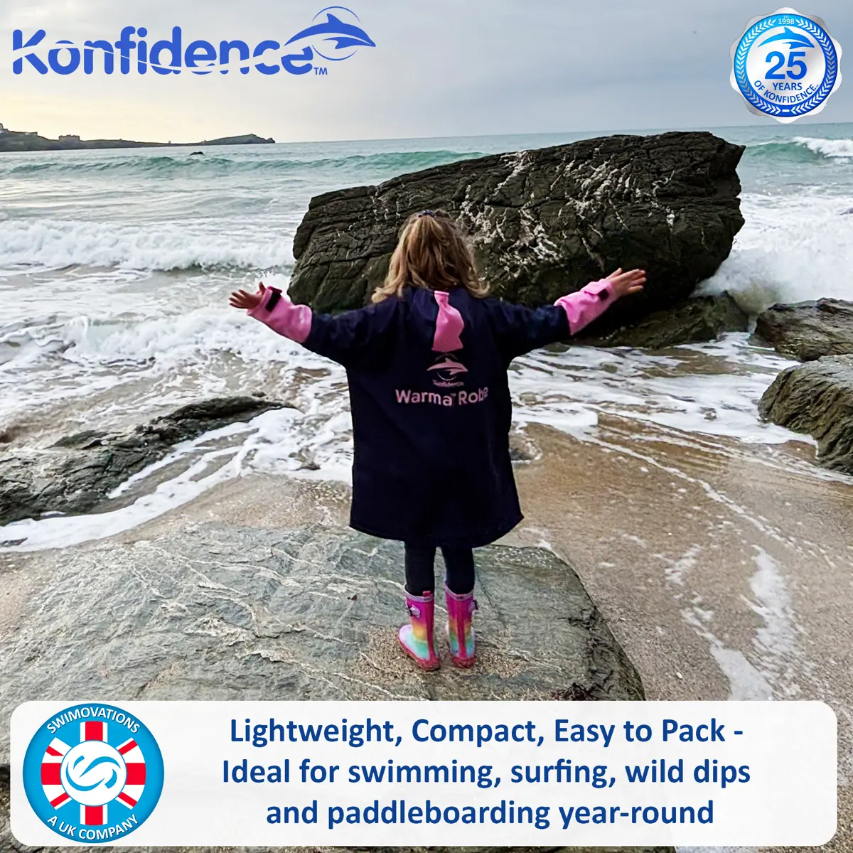 Keep young swimmers warm, dry, and ready for their next adventure with the Konfidence™ Kids Warma Robe in vibrant Navy Pink. Whether they’re drying off after a swim, exploring the beach, or getting changed after watersports, this fleece-lined robe wraps them in cosy comfort while protecting against wind and chill.