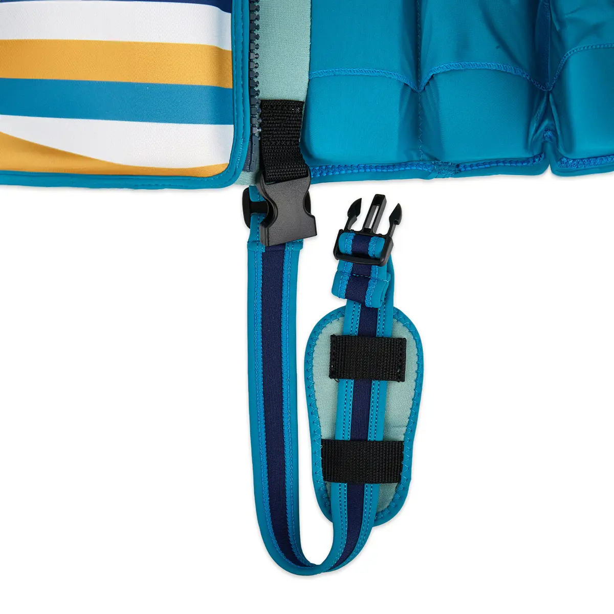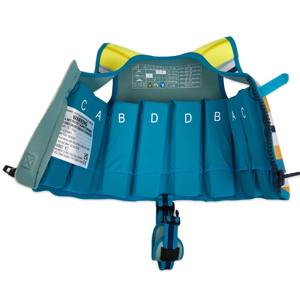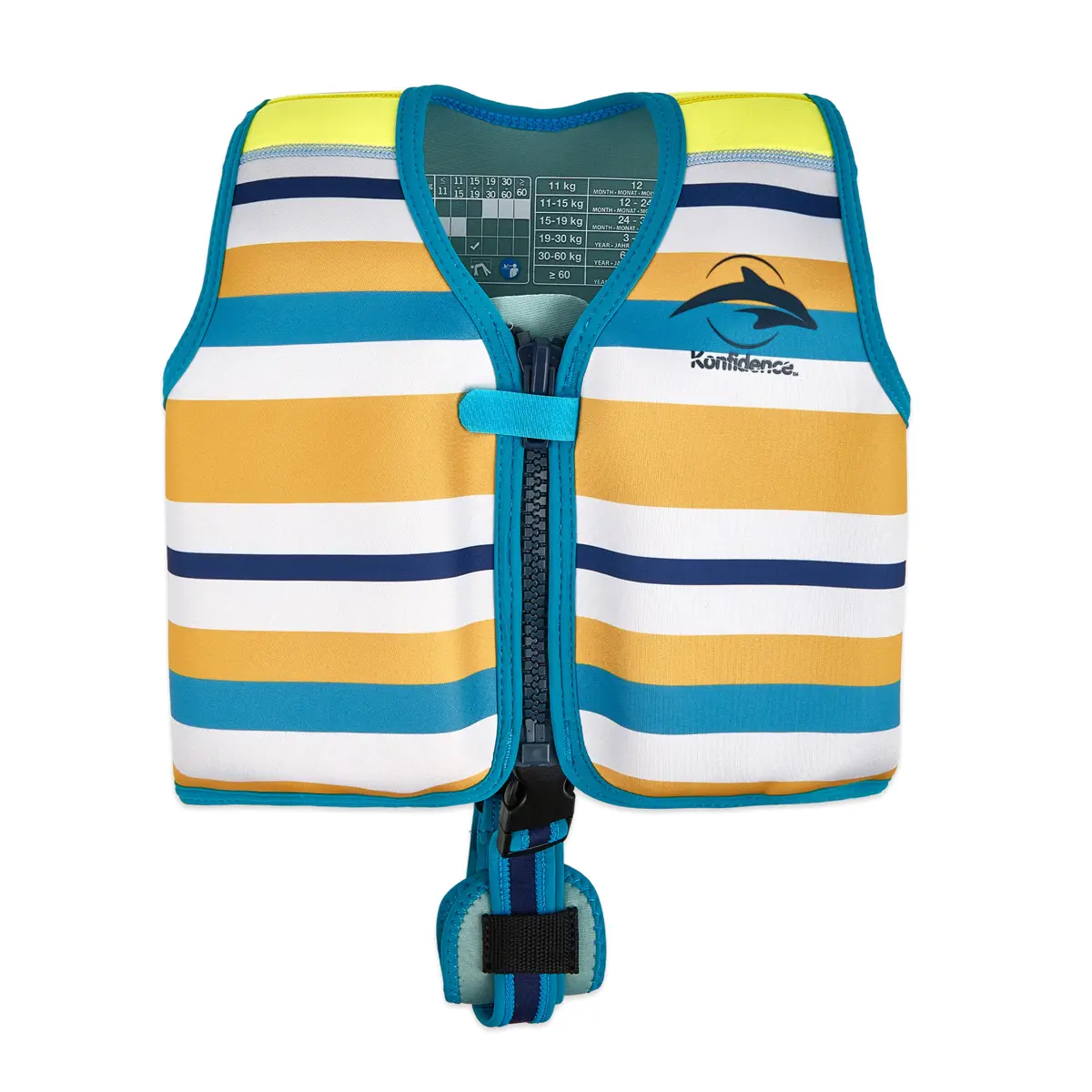 The high-visibility back ensures your child is easily spotted in the water, while the secure YKK self-locking zip and Velcro tab keep the jacket snug and secure. Its sleeveless design allows full arm movement, promoting a natural swimming position and confidence in the water.