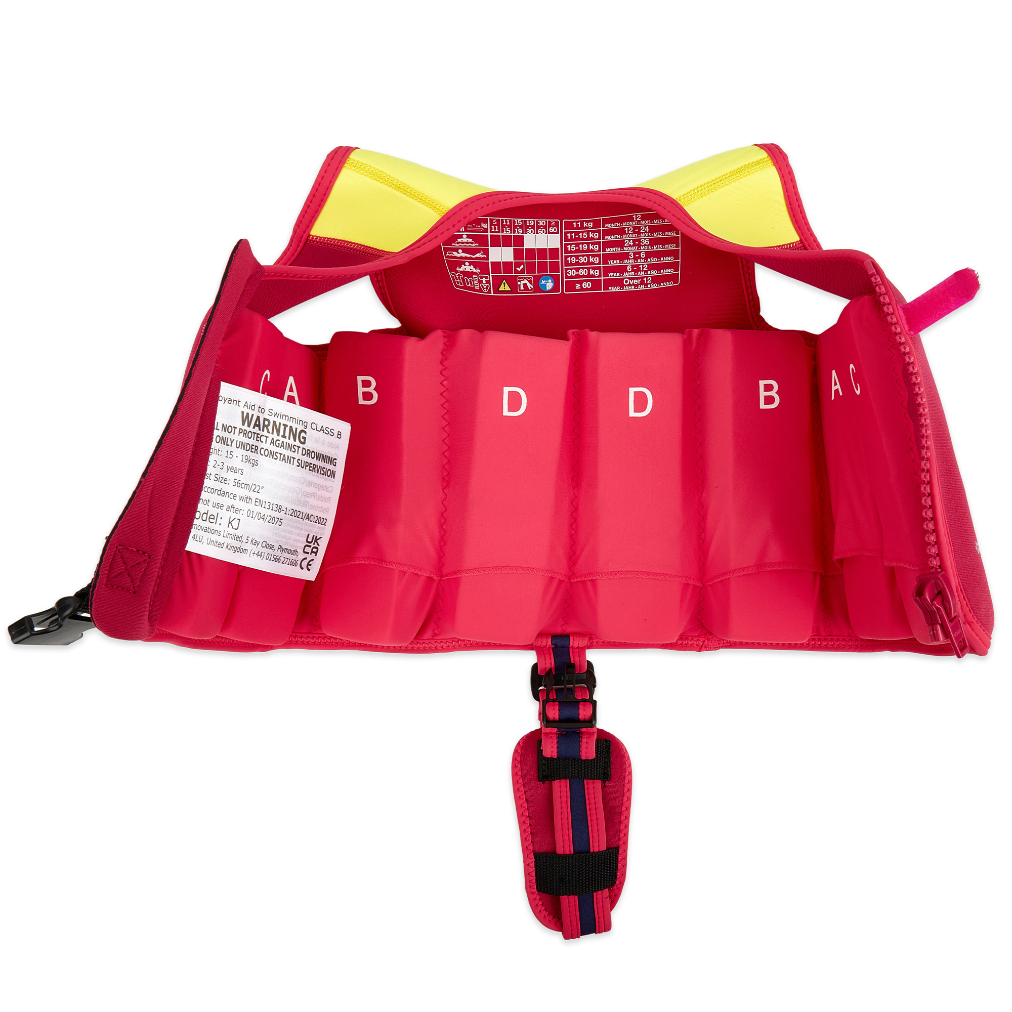Each jacket features a world-first fully removable and adjustable support strap, giving your child added comfort and flexibility. The eight removable foam floats allow you to tailor the buoyancy as their skills develop, supporting every stage of their swimming journey.