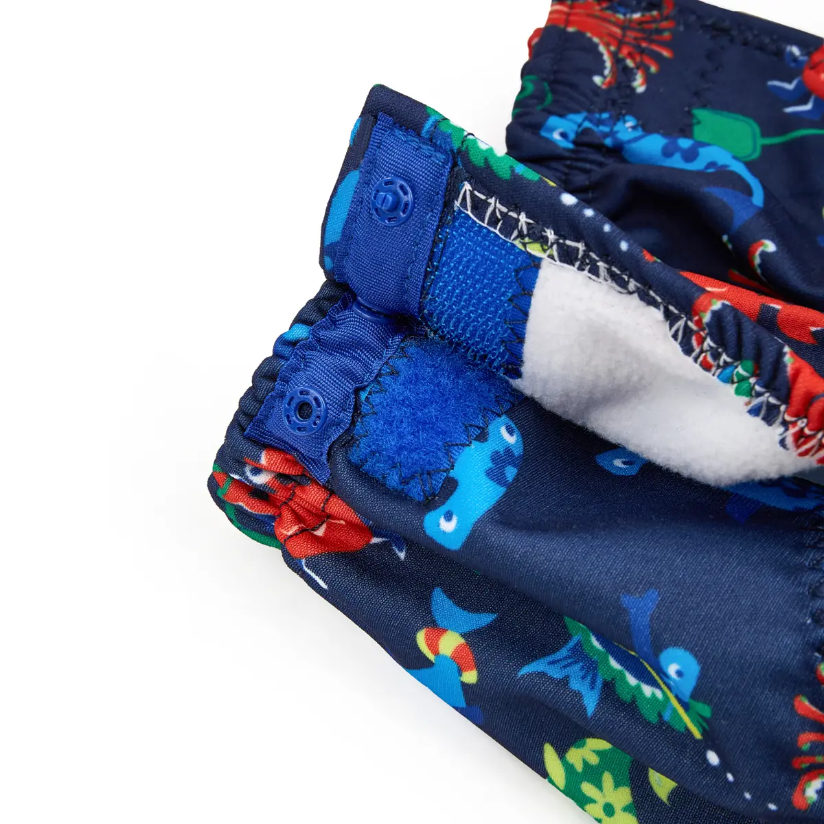 • Adjustable poppers, stretchy waistband and leg openings