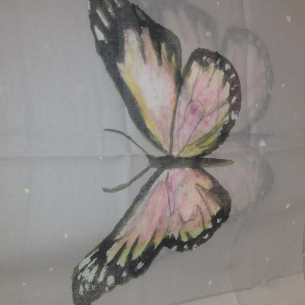 Wrap yourself in luxurious comfort as the soft, high-quality fabric gently caresses your skin. The neutral grey hue provides a versatile backdrop, allowing the vibrant Pink Butterfly to take centre stage. Whether you're heading to a casual brunch or a sophisticated evening event, this scarf effortlessly transitions from day to night.