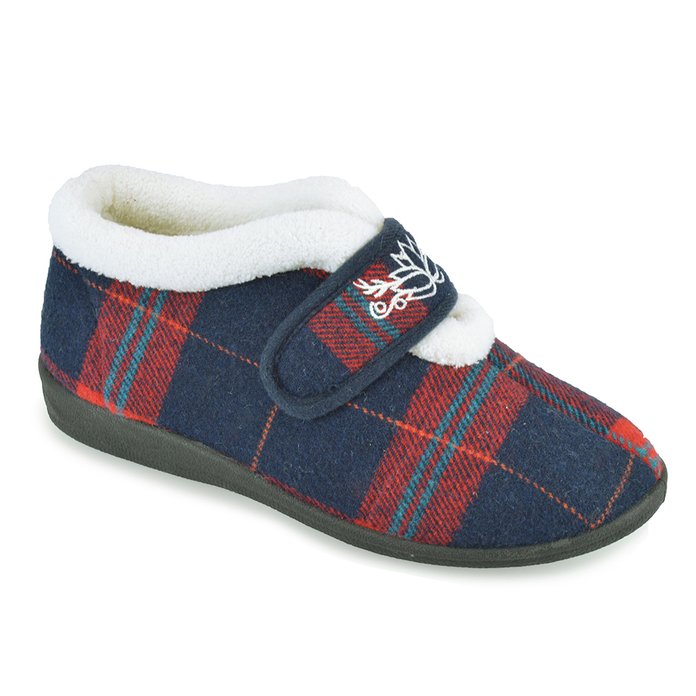 Ladies Tartan Velcro Slipper