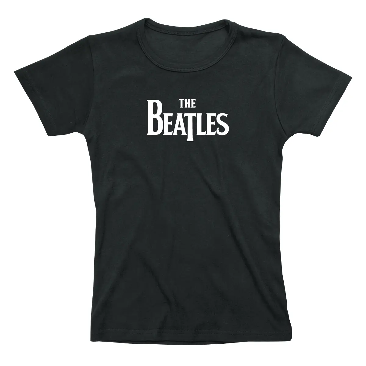 Ladies The Beatles Logo Black Fitted T-Shirt