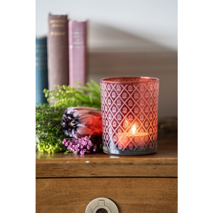 Beautifully designed and ideal for holding a votive or tea light candle, it adds a soft, flickering glow to your shelf, table or mantel. A lovely piece for seasonal styling or year-round ambience.
