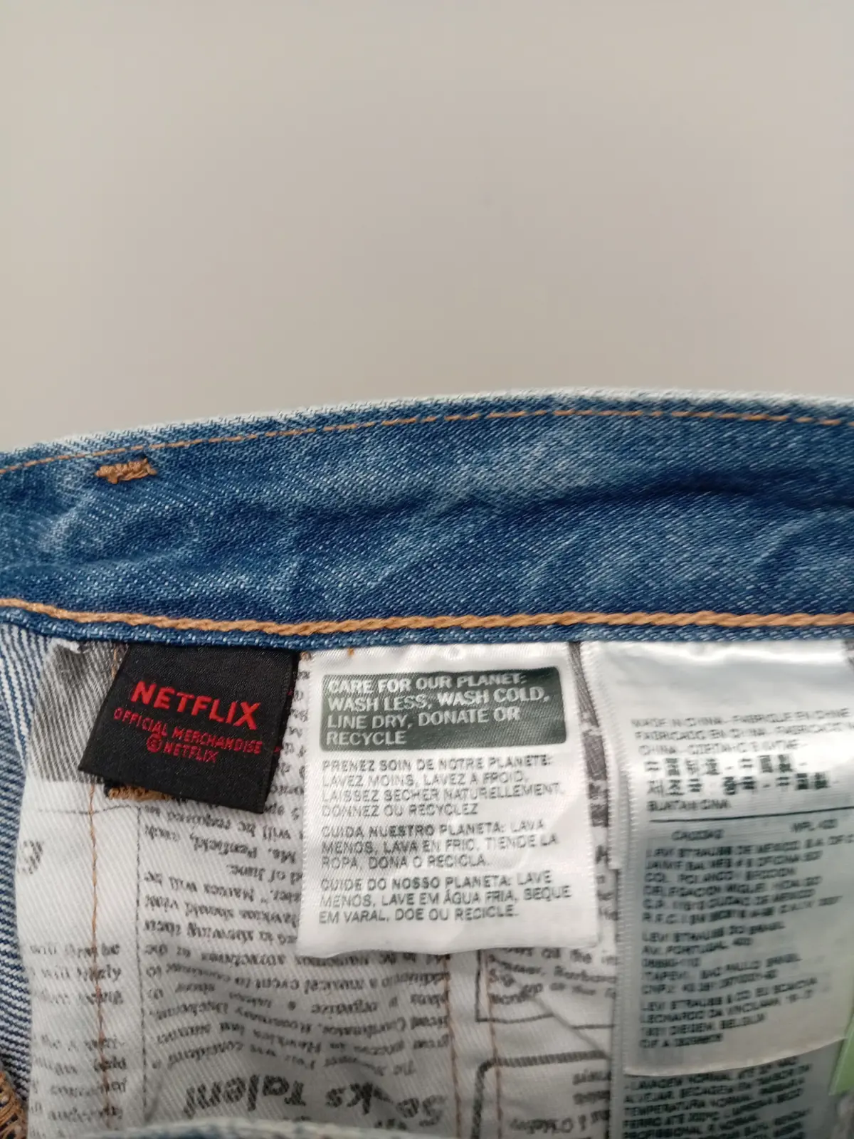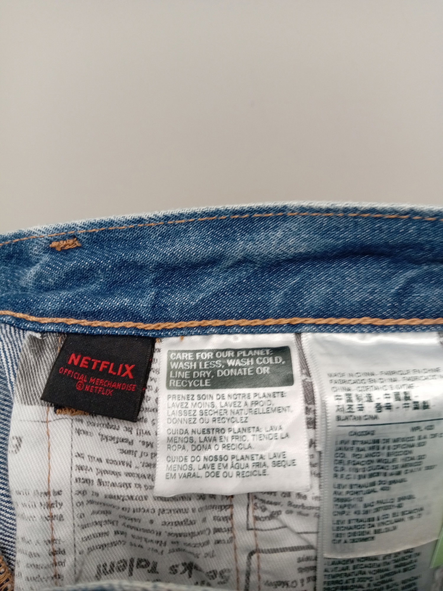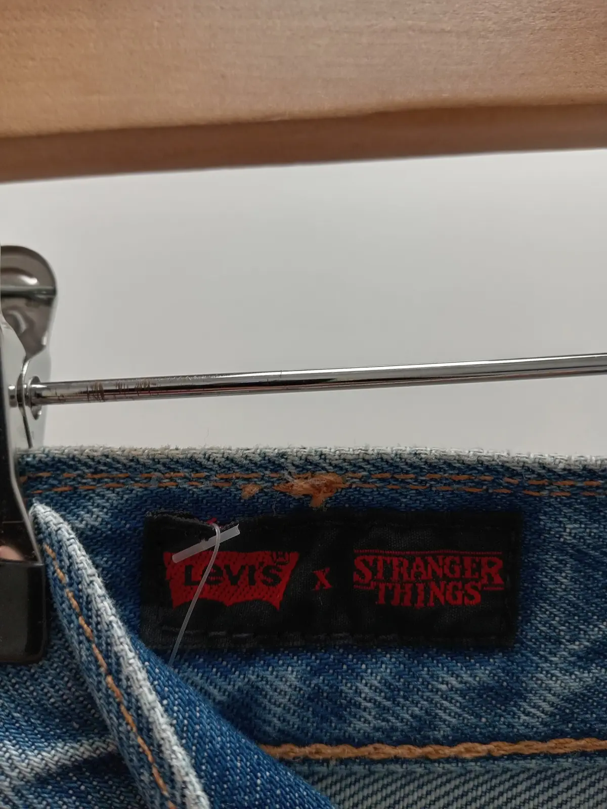 Step into retro style with these LEVI STRAUSS 505 x STRANGER THINGS Unisex Printed Blue Jeans, UK Size 29/30". A special collaboration between Levi's and the iconic Netflix series Stranger Things, these jeans fuse classic Americana denim with a bold, nostalgic twist.