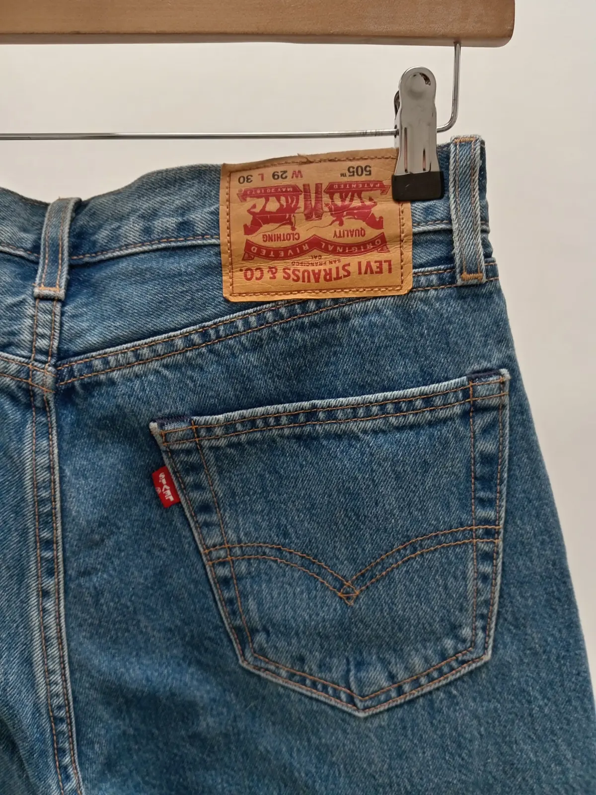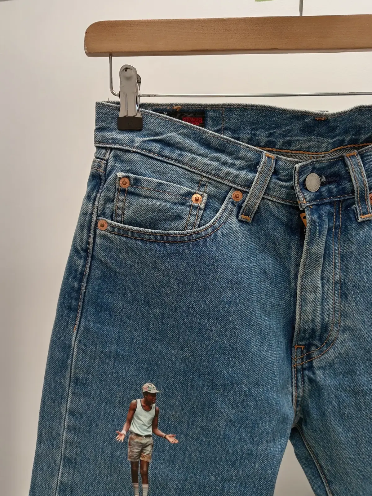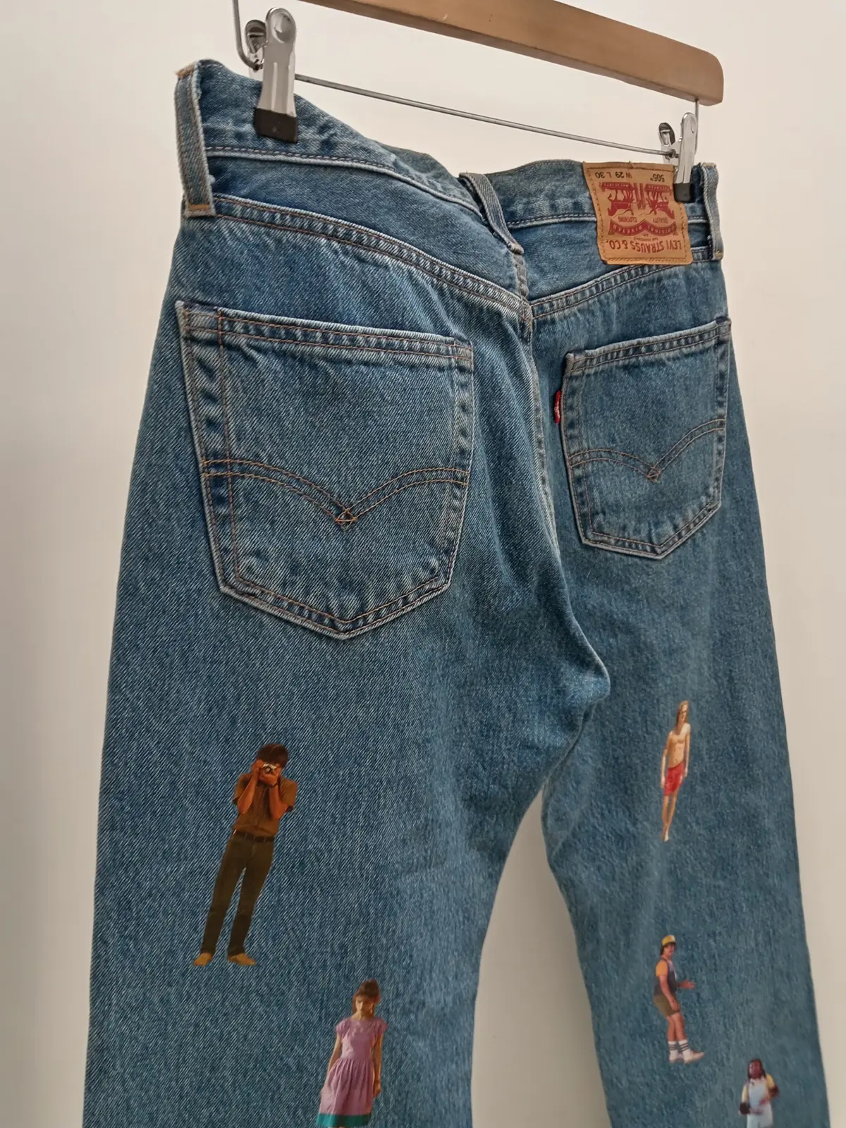 Step into retro style with these LEVI STRAUSS 505 x STRANGER THINGS Unisex Printed Blue Jeans, UK Size 29/30". A special collaboration between Levi's and the iconic Netflix series Stranger Things, these jeans fuse classic Americana denim with a bold, nostalgic twist.