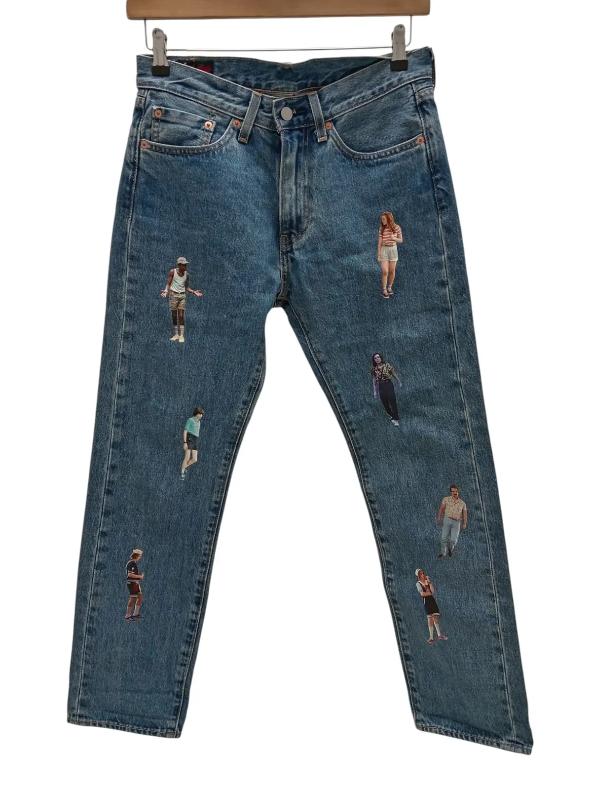 Crafted in the timeless 505 straight-leg fit, these jeans feature a unique printed design inspired by the 1980s—perfect for fans of the show and lovers of standout street style alike. With signature Levi's detailing, including a branded patch and classic five-pocket styling, these jeans deliver both comfort and authenticity.