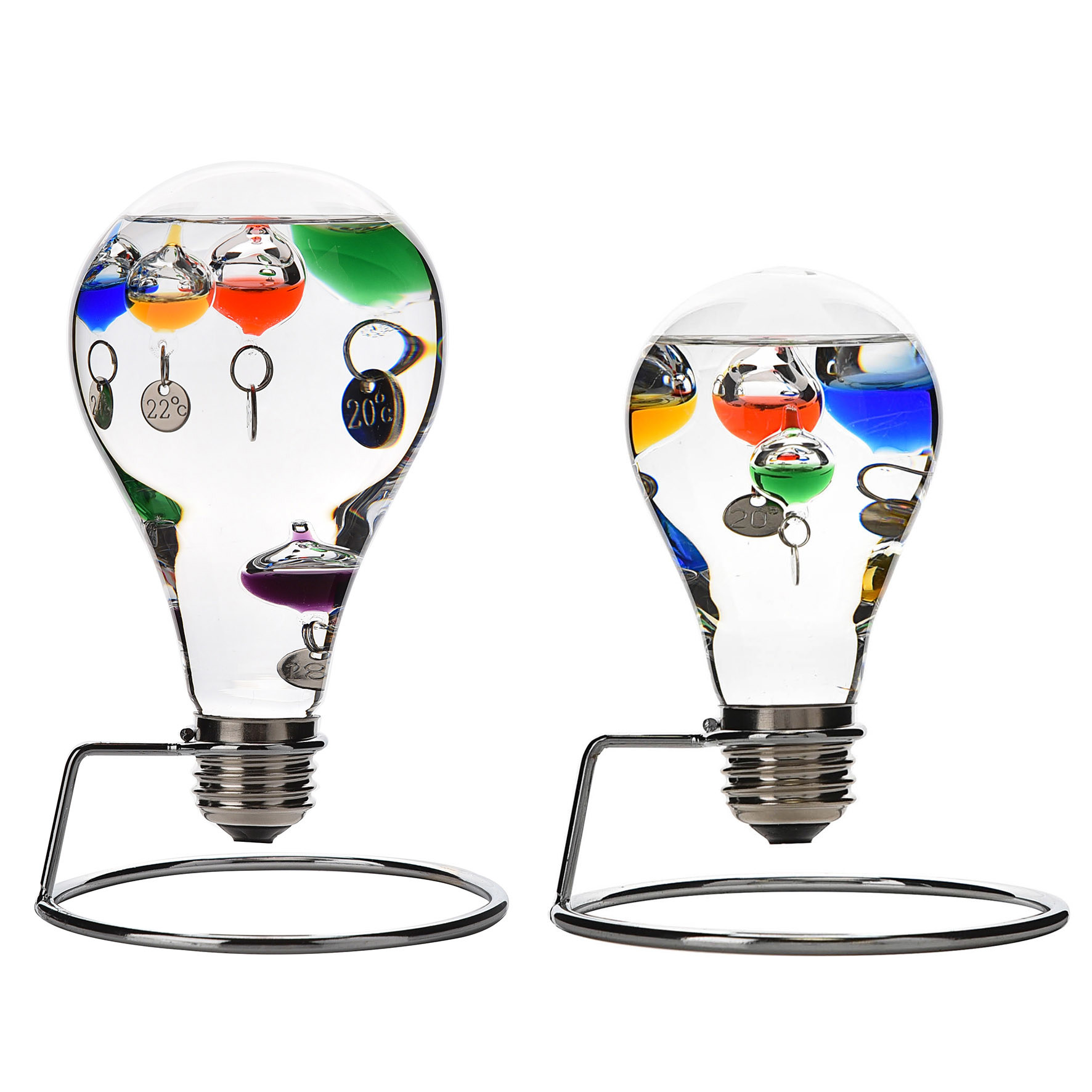 LIGHT BULB SHAPE 18CM GALILEO THERMOMETER ON METAL STAND