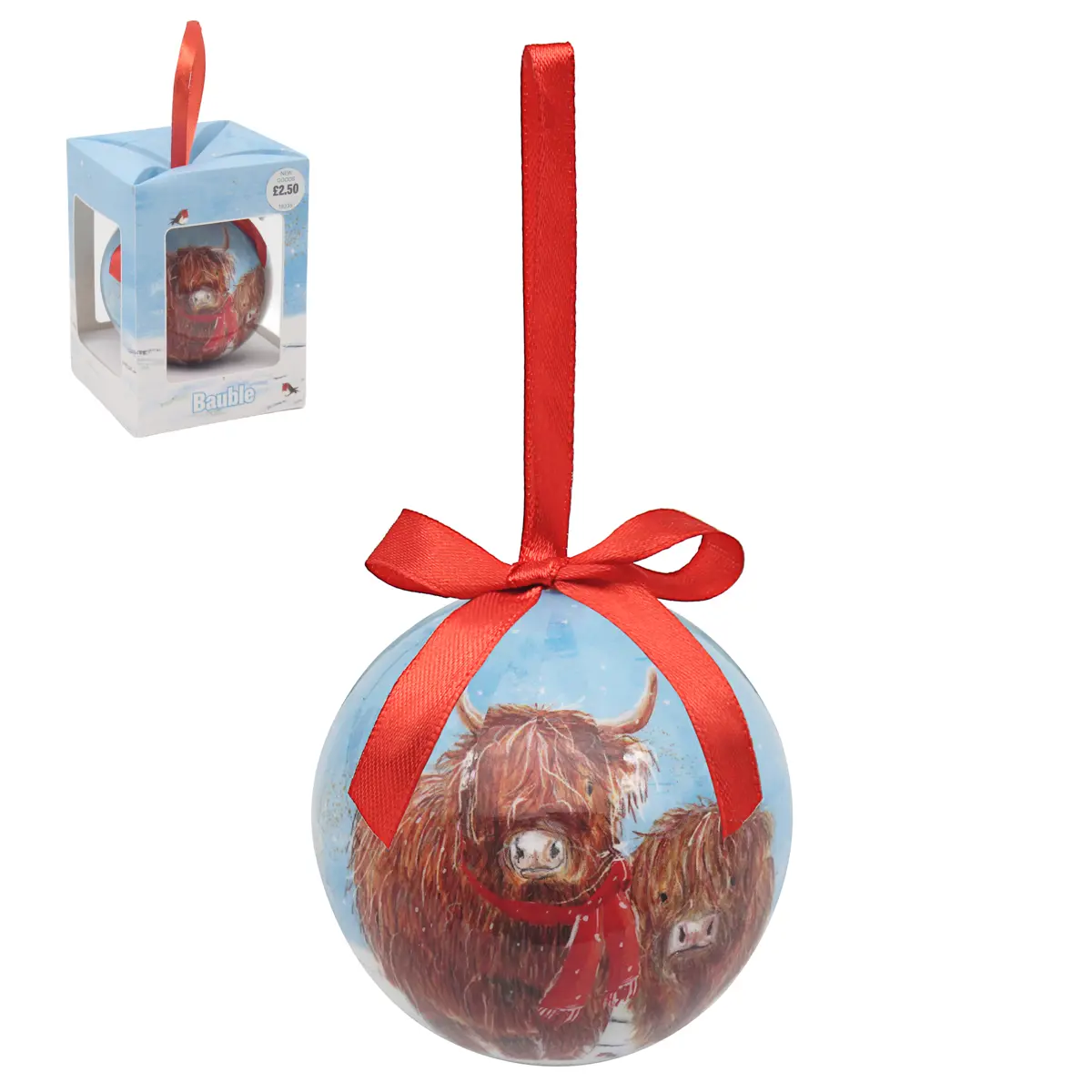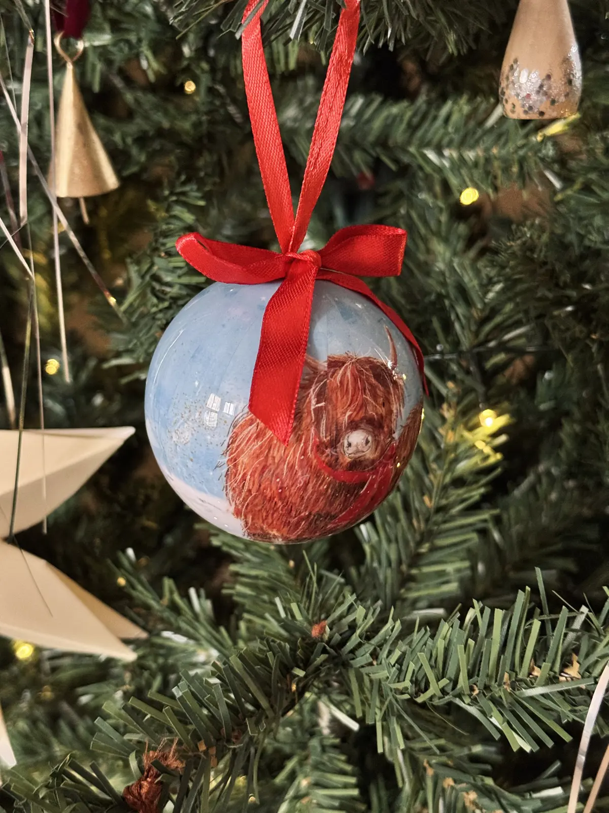 Limited Edition Festive Highland Cow Design Christmas Tree Bauble