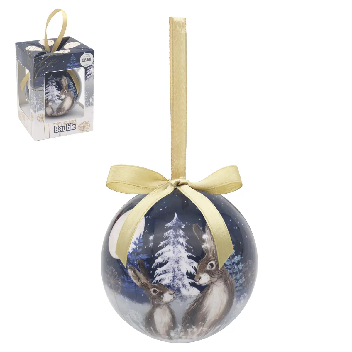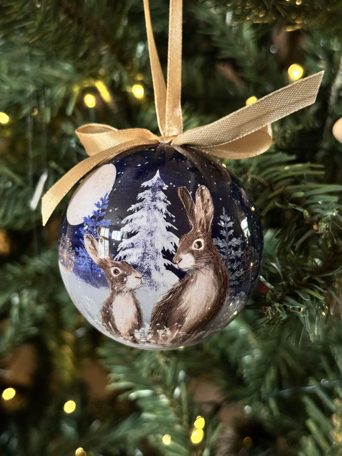Limited Edition Winter Woodland Hare Design Christmas Tree Bauble