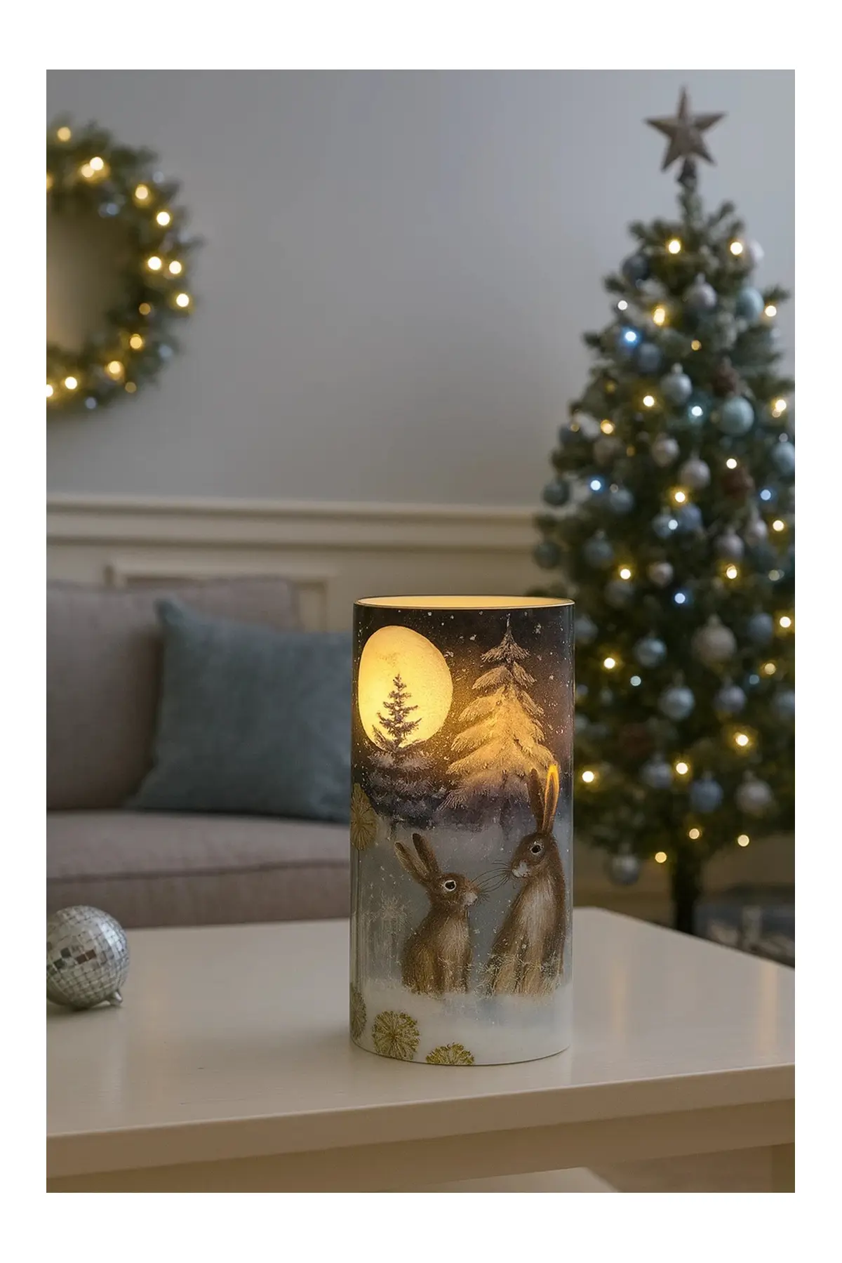 Limited Edition Winter Woodland Hare Design LED Battery Operated Candle