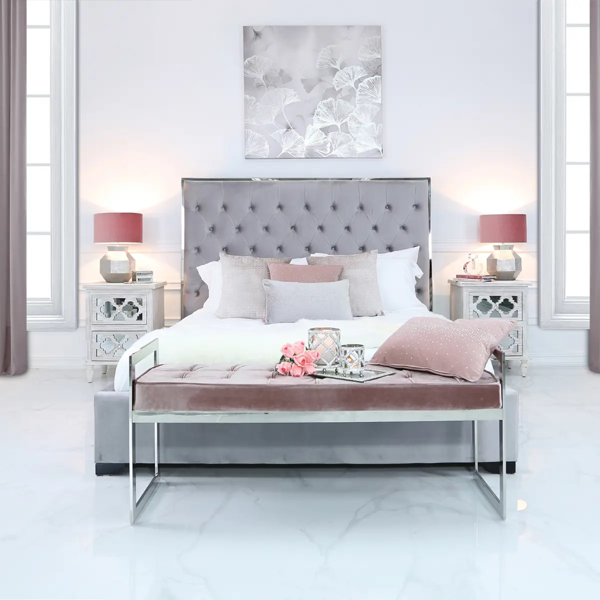 Experience the perfect blend of modern design and comfort with the Lina Home Zenith Rose Pink Stainless Steel Bench. Featuring a sleek stainless steel frame, this bench ensures long-lasting sturdiness. The plush fabric seat, upholstered in a rose pink colour, invites you to unwind. Perfect for placing in a hallway or at the foot of the bed.