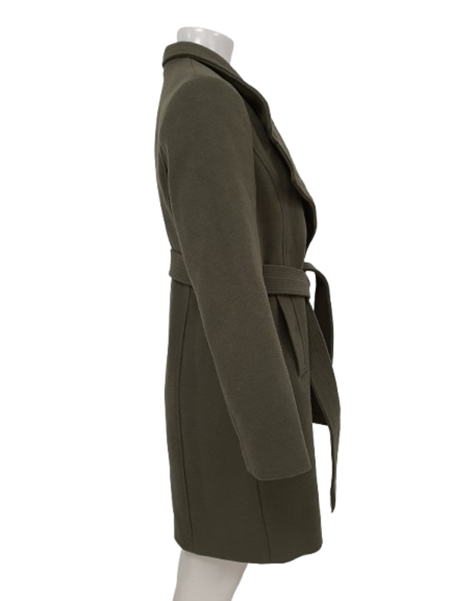 Lipsy London Women's Green Belted Overcoat Size UK 12 Pre-Loved Re-Fashioned