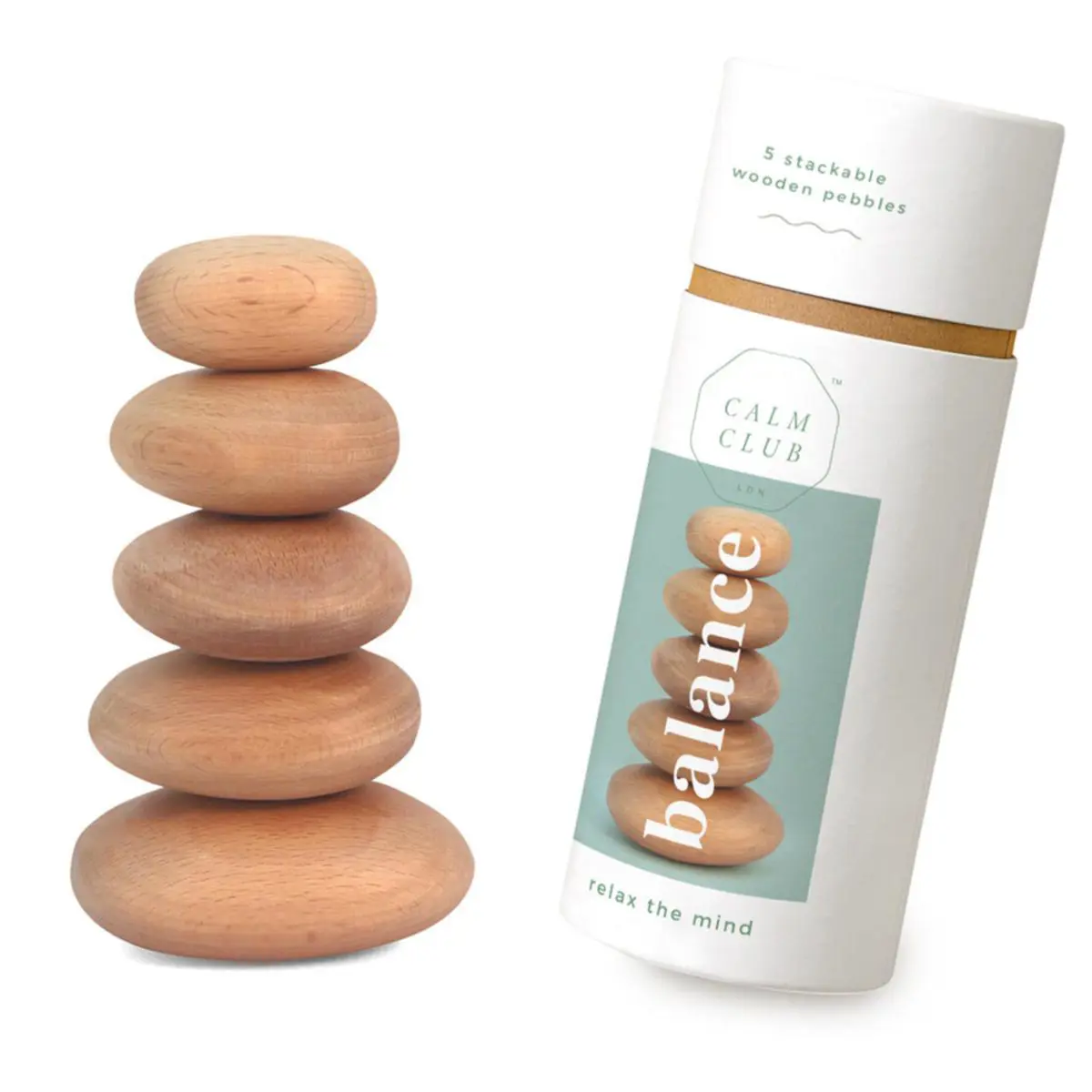 Find your moment of calm with the Luckies Calm Club Wooden Balance Set. This beautifully crafted mindfulness tool includes five beech wood stacking pebbles, designed to encourage focus, patience, and inner peace.