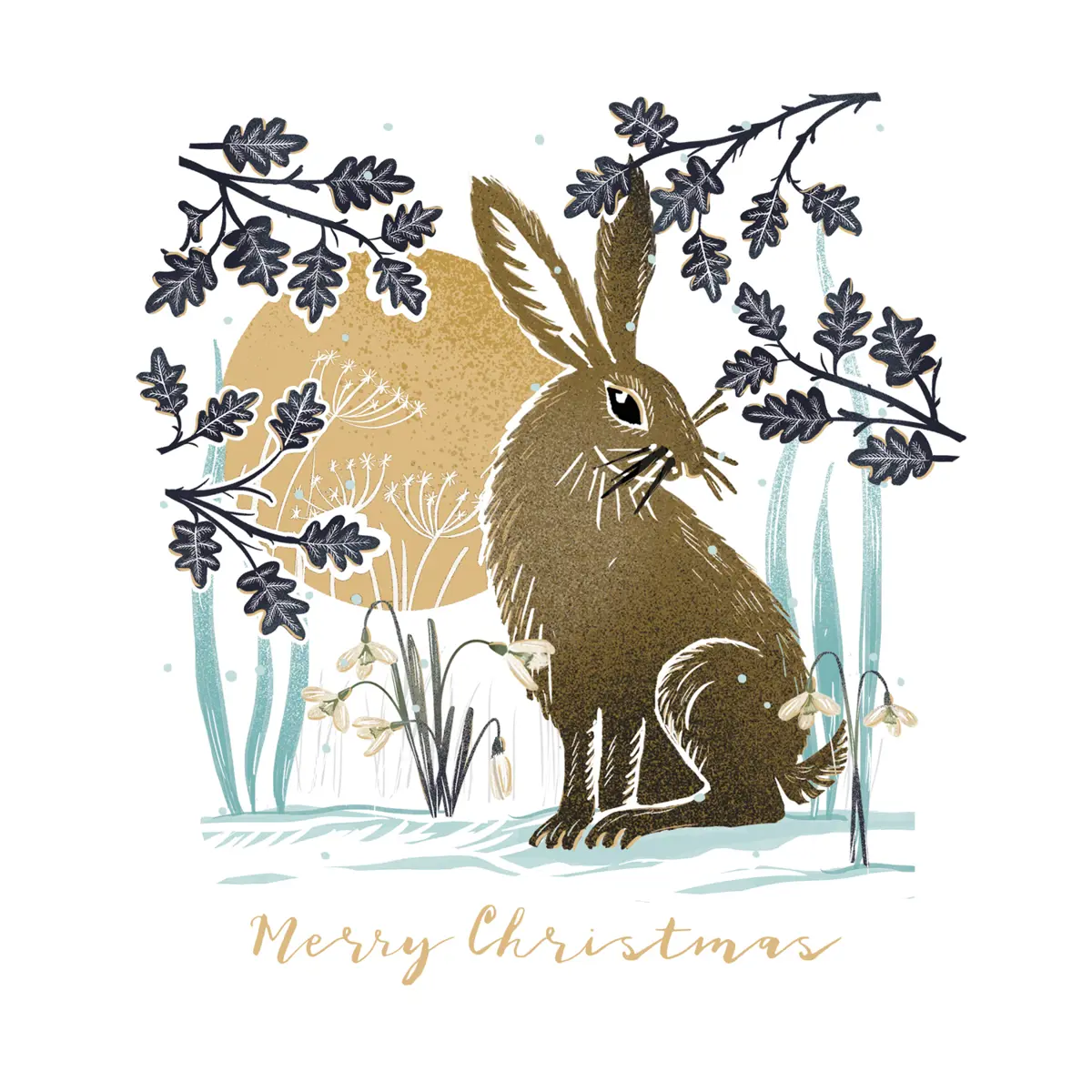 Celebrate the quiet beauty of the season with our Winter Hare Charity Christmas Cards. This striking design features a graceful hare sitting beneath frosty branches, bathed in the soft glow of a winter moon. Surrounded by delicate snowdrops and golden tones, it perfectly captures the peaceful magic of a winter’s evening.