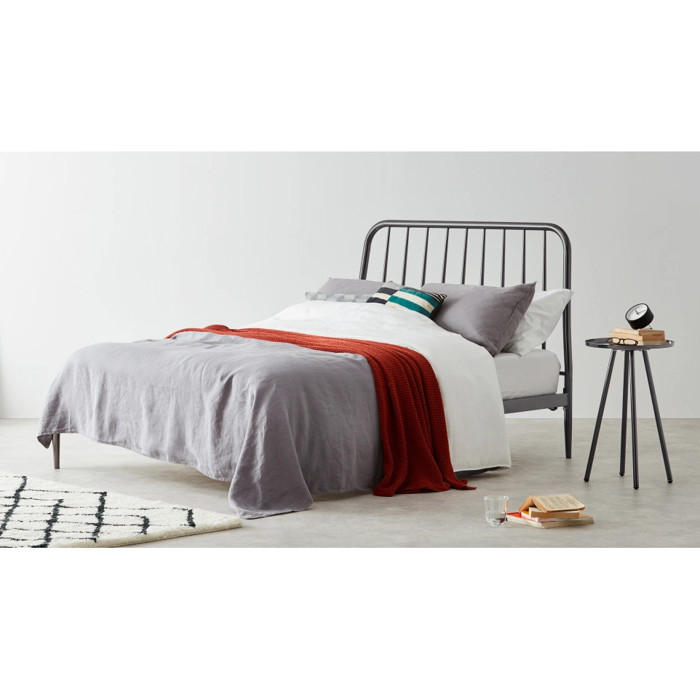Made.Com Alana Pebble Grey Metal Super King Bed Frame