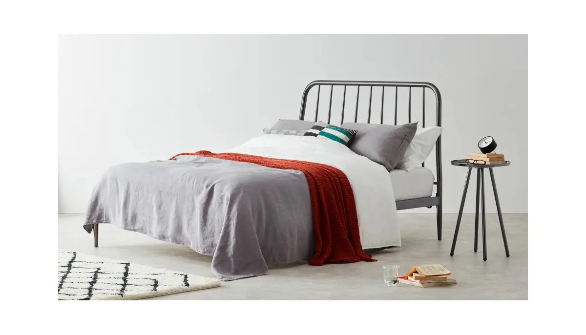 Made.Com Alana Pebble Grey Metal Super King Bed Frame