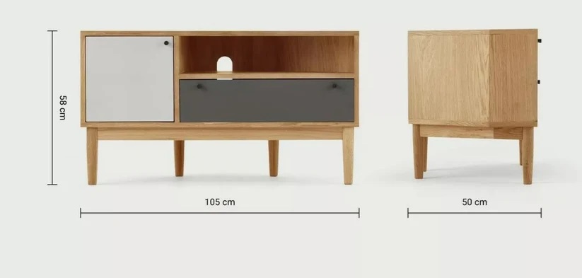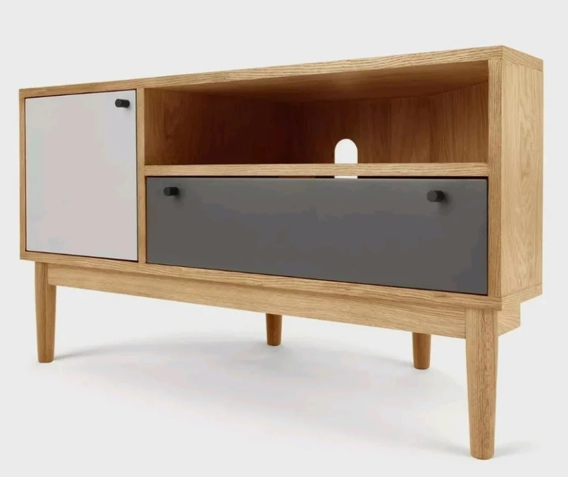 The Campton Oak & Grey Corner TV Cabinet by Made.com boasts a contemporary design, combining the warmth of oak with the modern allure of grey. Its sleek aesthetic effortlessly complements any interior style, making it the perfect focal point for your entertainment area.
