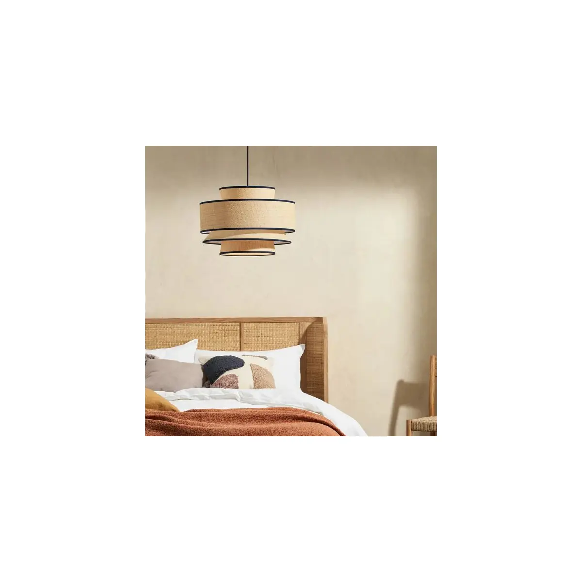 • Elegant layered lamp shade in natural raffia