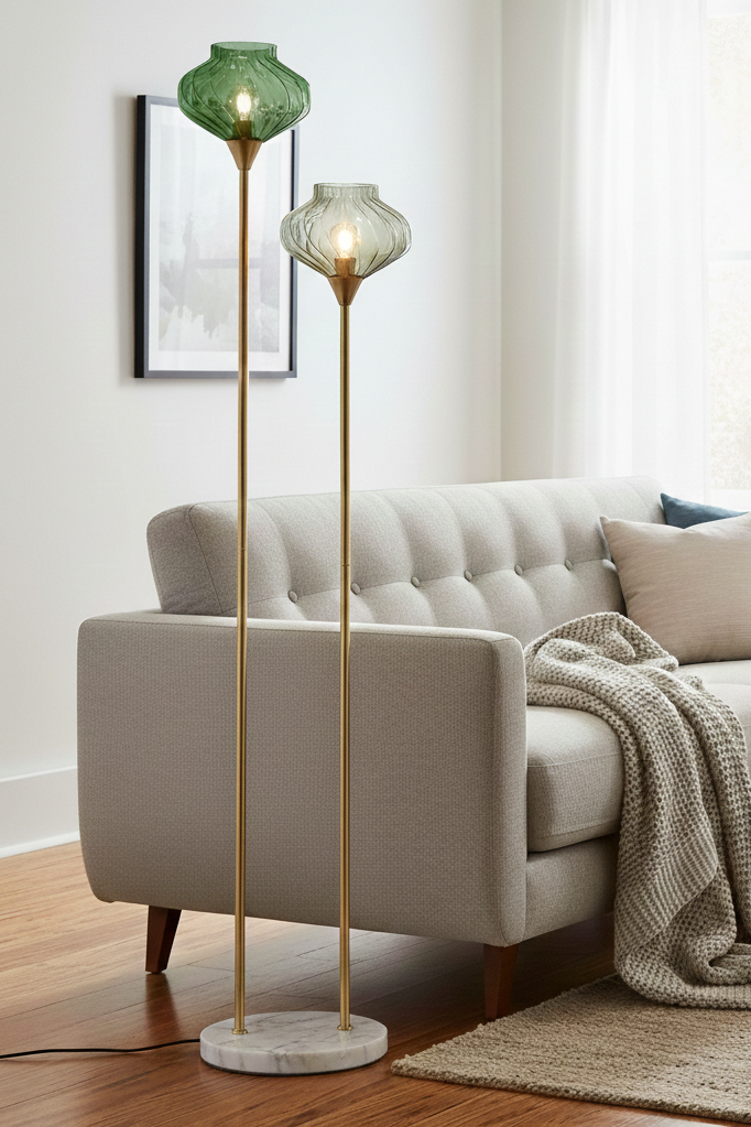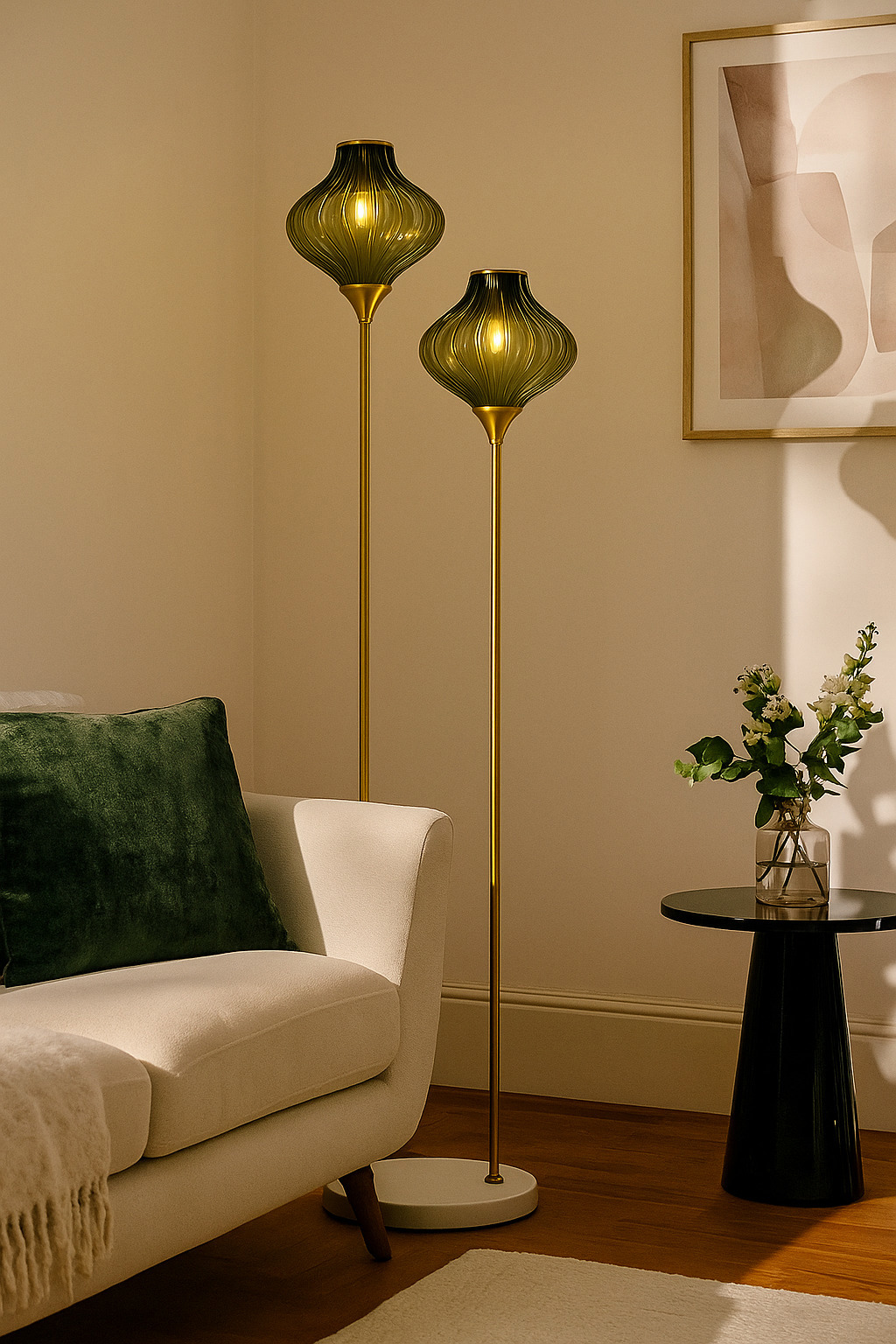The sleek brass-finish stems and solid marble base provide both style and stability, while the dual-light design offers balanced illumination that’s perfect for living rooms, bedrooms, or reading corners. With its artistic silhouette and luxurious materials, the Kaleido floor lamp is the perfect blend of function and finesse.