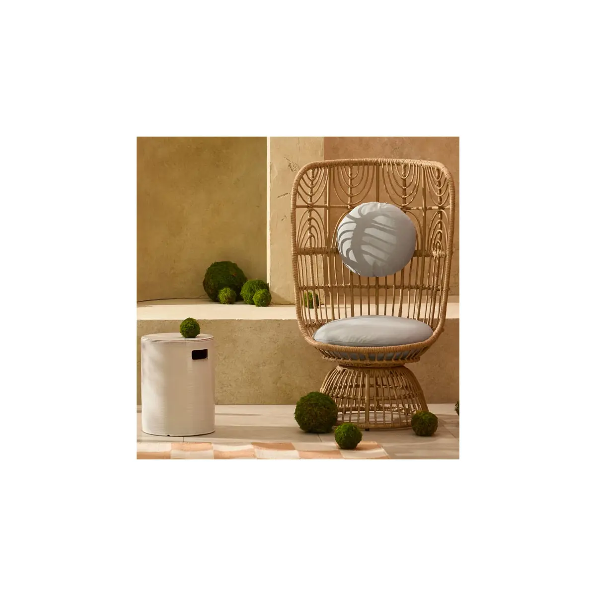 The  Made.Com Nairi Garden Accent Chair boasts a contemporary design that effortlessly complements any outdoor aesthetic. Its clean lines and neutral tones create a timeless appeal, making it a versatile addition to your outdoor furniture collection, or as an additional piece in your conservatory.  Sink into the sumptuous cushions that accompany the Nairi Chair. The thoughtfully designed cushions provide not just comfort but also a touch of elegance to your outdoor retreat.