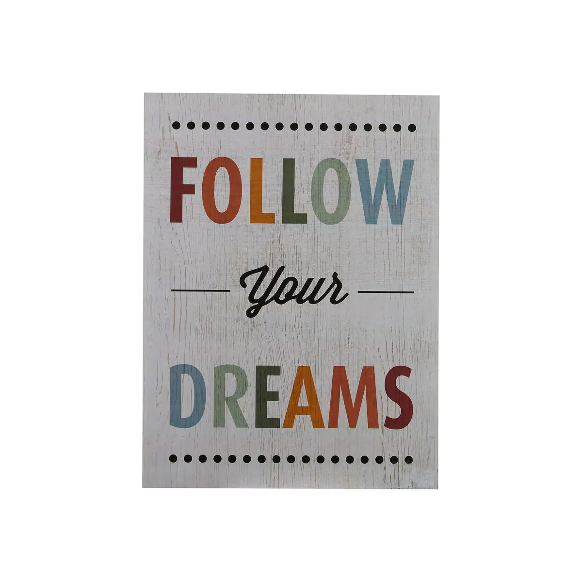 Add a splash of colour and positivity to your home with the Madera Follow Your Dreams Wall Plaque. Featuring vibrant lettering and a gently distressed finish, this cheerful piece brings encouragement and personality to any space.