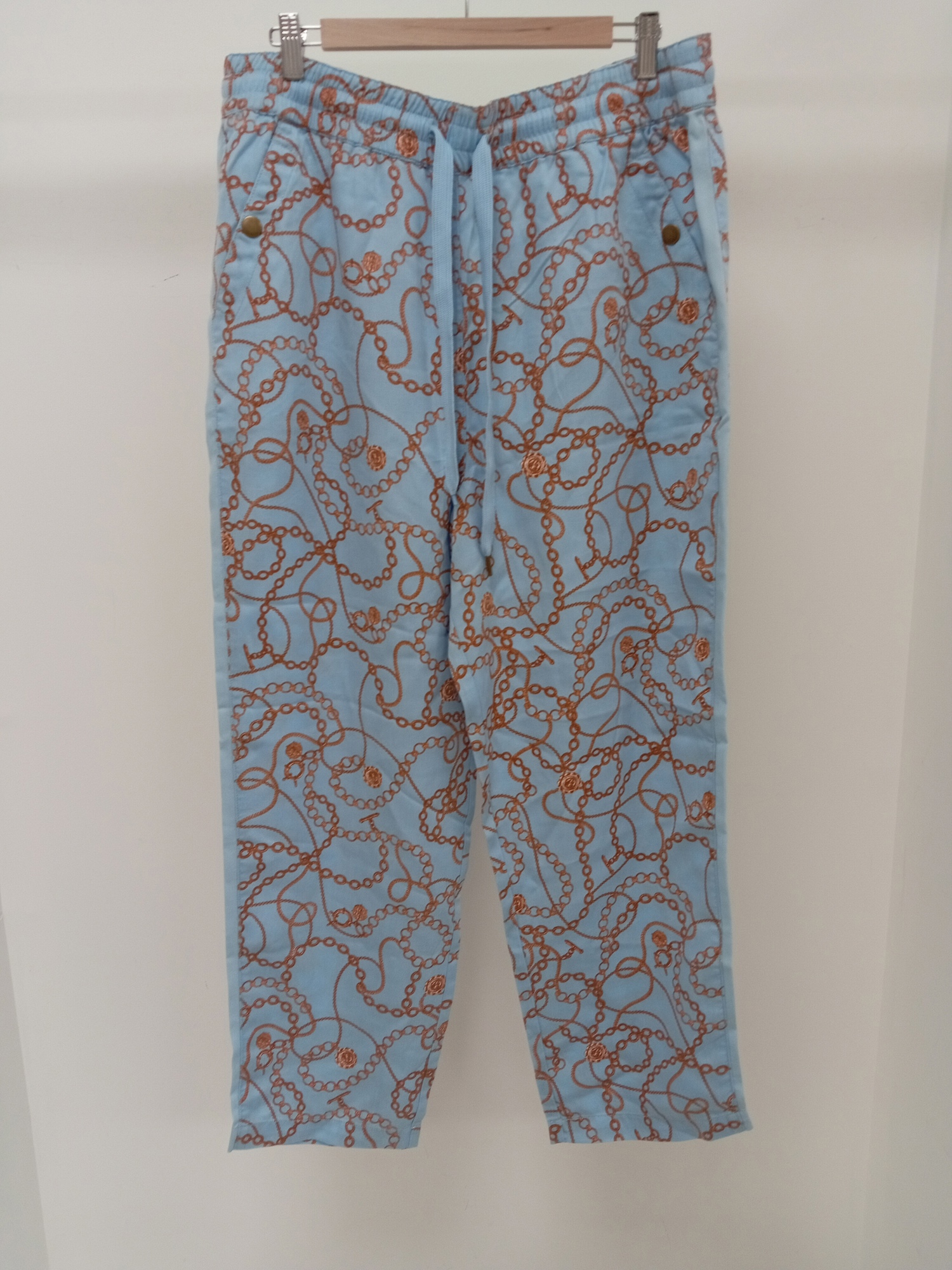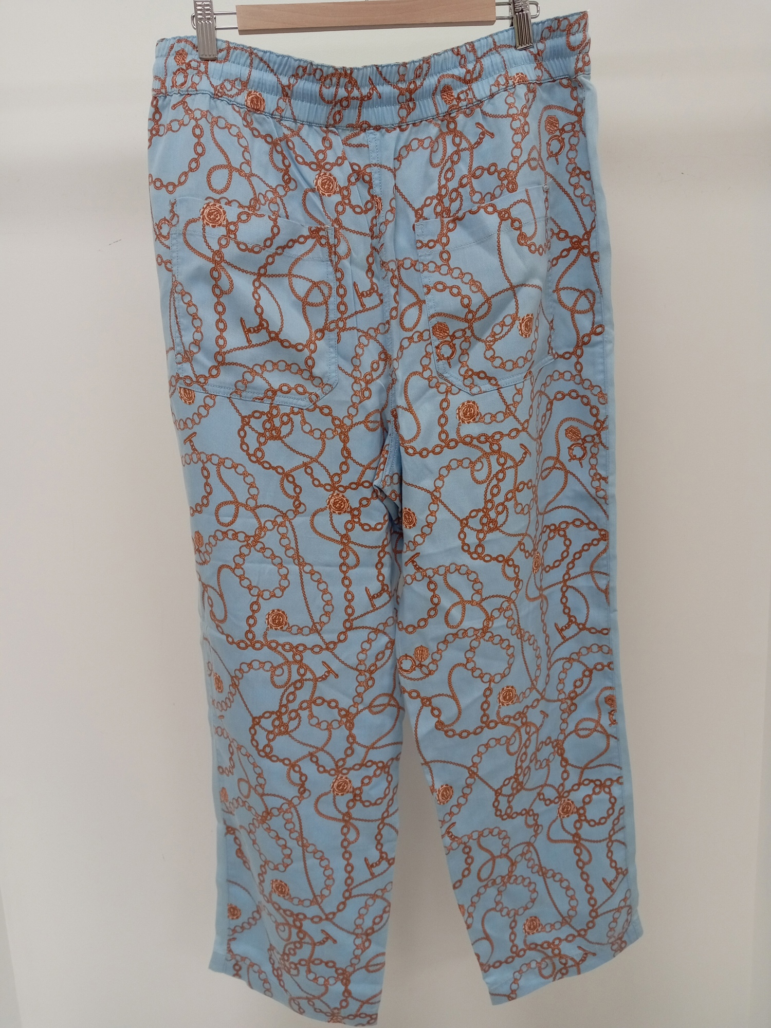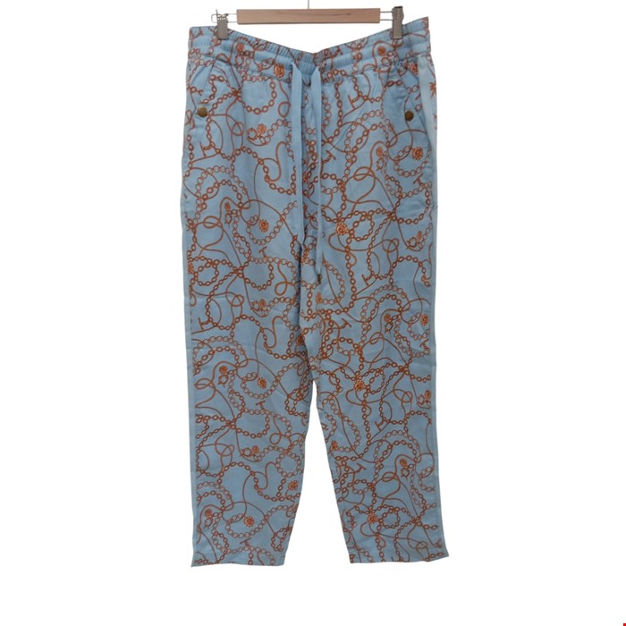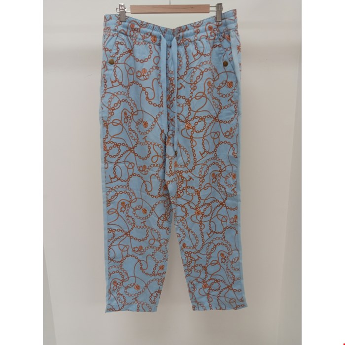 MAEVE by ANTHROPOLOGIE Ladies UK Size L Blue Chain Print Wide Leg Trousers – Pre-Loved (Great Condition)