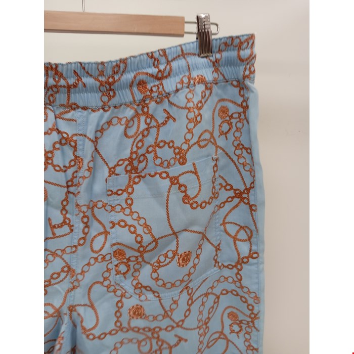 MAEVE By ANTHROPOLOGIE Ladies UK L Blue Chain Print Wide Leg Trousers Pre-Loved