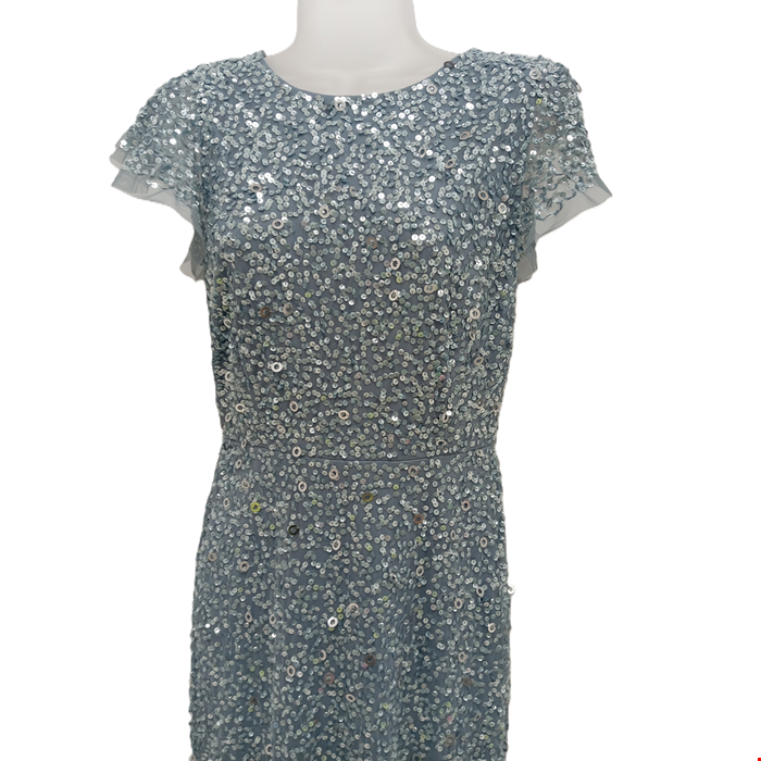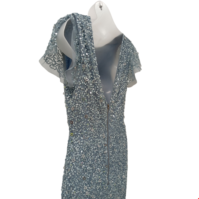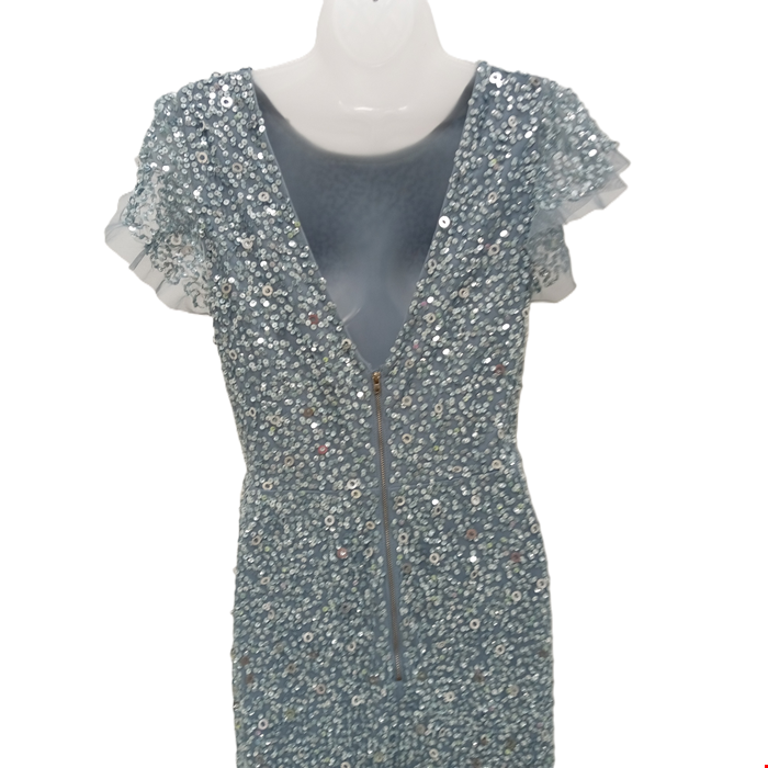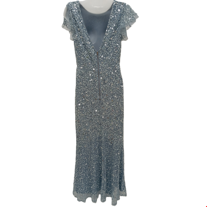 MAYA DELUXE Ladies Blue Sequin Long Line UK 10 Prom Evening Dress Pre-Loved