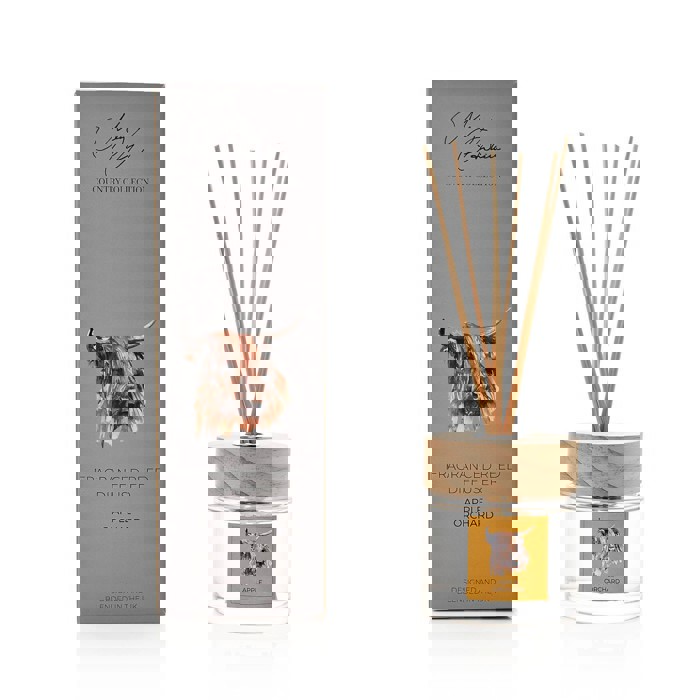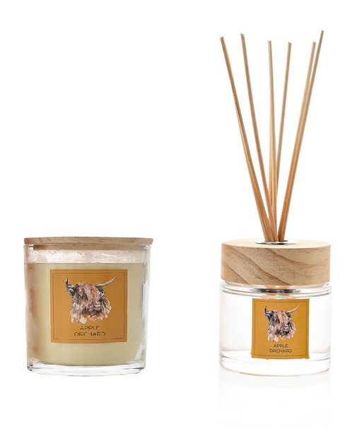 Bring the beauty of the British countryside indoors with this charming Highland Cow diffuser and candle set by Meg Hawkins. Infused with the refreshing Apple Orchard fragrance, it combines crisp notes of green apple with hints of raspberry, peach, white florals, musk and amber. Presented in beautifully illustrated watercolour vessels featuring the much-loved Highland Cow, this set makes a delightful gift or a rustic addition to your own home.